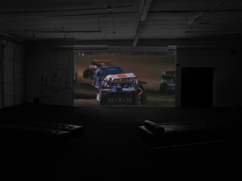 Giovanni’s Room presents Greg Jenkins’s first exhibition with the gallery, featuring his films Motor Motor Blue (2025), 82, 83 (2025), and Raider (2025). Jenkins, an American artist and filmmaker based in Los Angeles, explores a phantom America shaped by myth and memory. Motor Motor Blue, dedicated to his late uncle, moves through Appalachian landscapes, mines, racetracks, and museums, weaving silence, text, and image into meditations on loss, absence, and what remains.