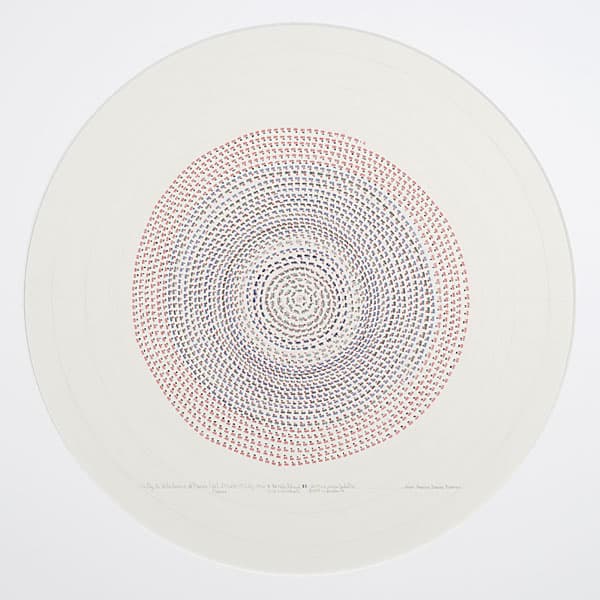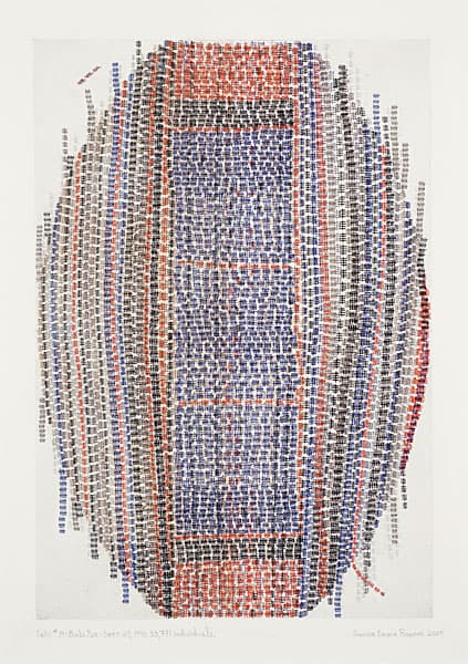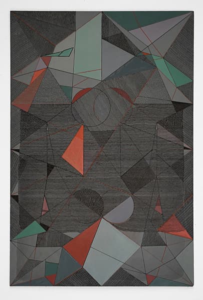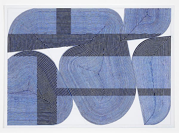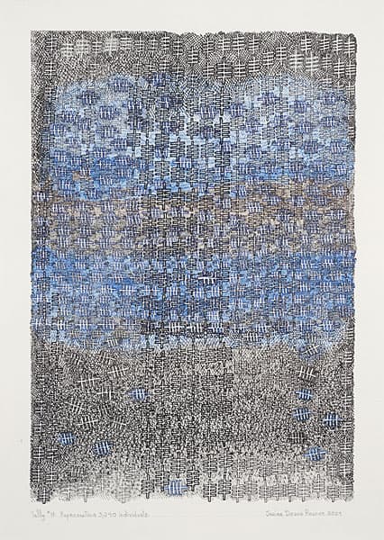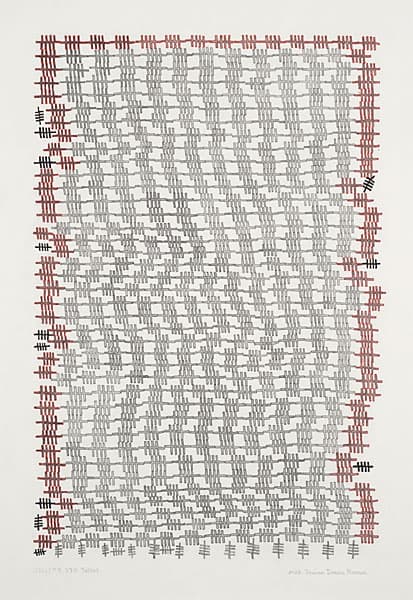 Jessica Deane Rosner’s intricate drawings, made with ink, gouache, graphite, and colored pencil, develop slowly through dense linear patterns and geometric structures. Using drafting tools and freehand marks, she builds layered compositions where slight imperfections remain visible. Several bodies of work explore grids, colored grounds, and architectural forms. Her ongoing Tally series uses repeated marks to honor lives lost through historical or environmental events, turning careful drawing into an act of remembrance.