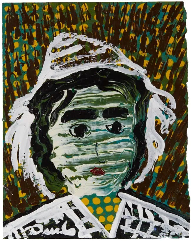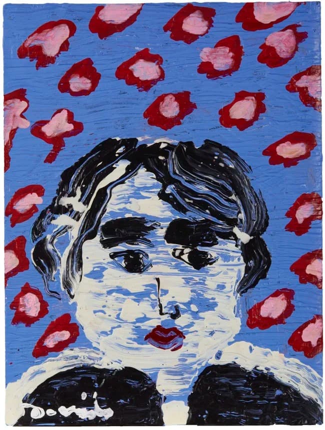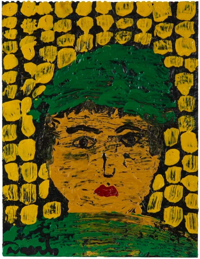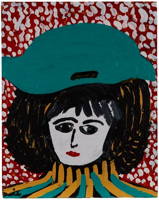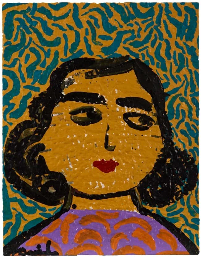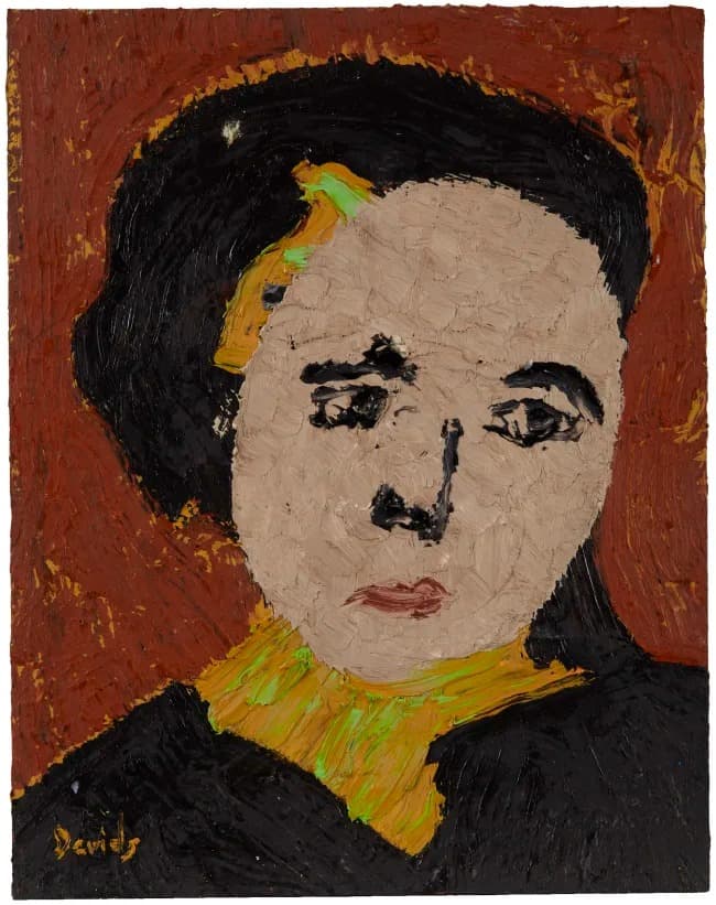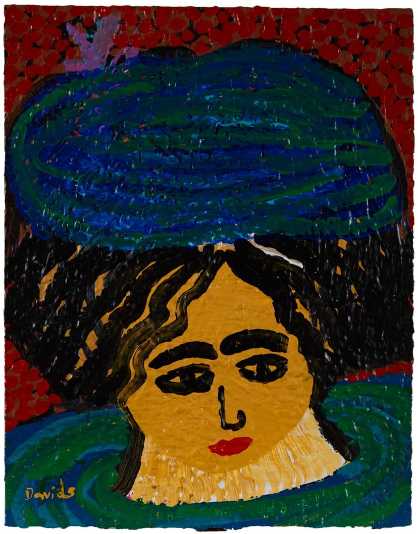 Franne Davids: A Theater of Faces centers on the late artist’s intimate oil on paper portraits, many of them self-portraits. Created in isolation, the works show vivid faces emerging from patterned fields and bold color. The paintings convey presence over likeness, presenting a personal visual language shaped by introspection and intensity.