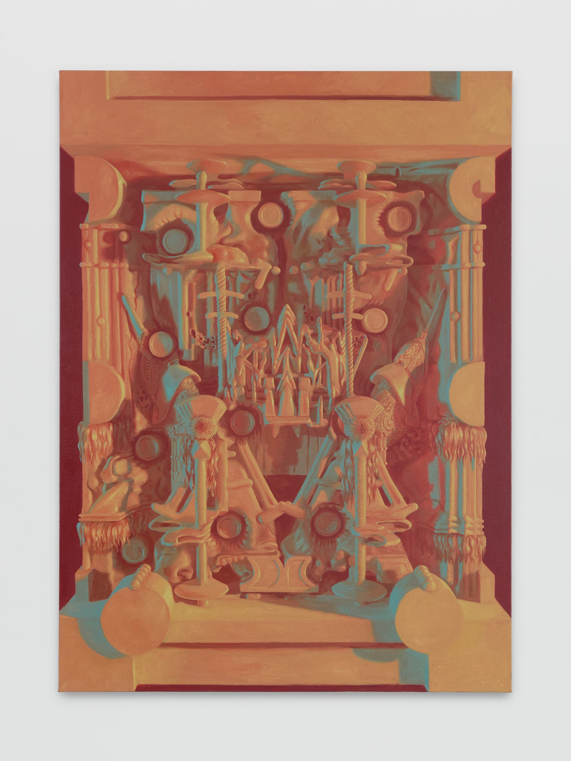 Tom Waring’s All the Pomp of Yesterday at Tara Downs reflects on historical legacies and shifting cultural authority. Referencing Kipling’s poetry, the exhibition examines British colonialism, political transitions, and the fragility of historical narratives. Waring’s illusionistic paintings incorporate architectural elements, Gothic motifs, and layered imagery, questioning perception and meaning. Objects with built-in obsolescence highlight cycles of change, prompting reflection on authority and critique.