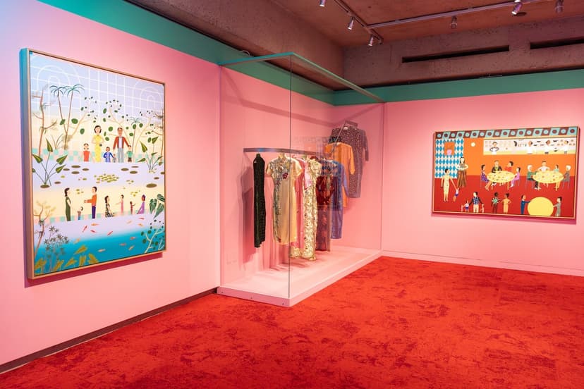 Ancestral Visions at OMCA features new paintings by Chelsea Ryoko Wong inspired by dresses once worn by six 20th-century Chinese American women. Drawing from real and imagined scenes, Wong’s vibrant works connect fashion to memory, identity, and cultural legacy. Alongside the paintings, visitors will see the garments that sparked them, inviting reflection on how clothing carries meaning across time and expresses personal and collective history.