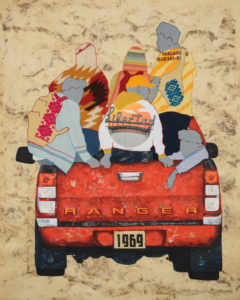 Bay Area–based artist Arleene Correa Valencia expands her exploration of family history and Mexican migrant narratives through multimedia paintings and textiles made in close collaboration with family and community, offering a timely protest that affirms art and joy as meaningful forms of resistance amid today’s immigration debates.
