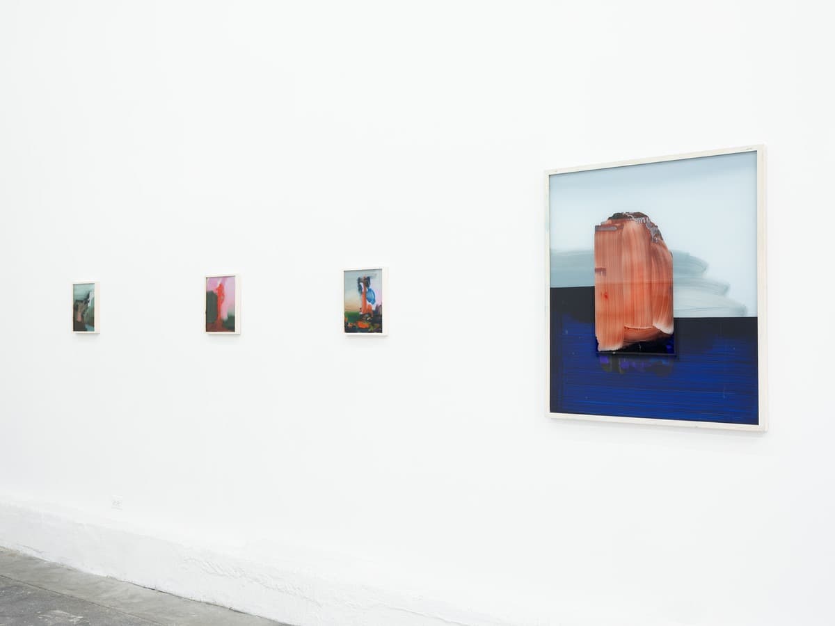Daniel Karrer’s Aw: Aw: Aw: features reverse glass paintings that subvert traditional techniques. Working wet-on-wet from the back of the glass, Karrer erases, shifts, and layers brushstrokes to form textured, luminous surfaces. The glass acts as both boundary and skin, evoking the screens that mediate modern vision. His landscapes—at once abstract and figurative—pulse with motion, opening portals into fantastical, self-aware worlds.