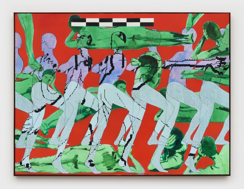 Olivia van Kuiken: Bastard Rhyme confronts stasis through dynamic canvases inspired by Futurism, Baroque drama, and geometric abstraction. Figures are fragmented, multiplied, and reconfigured into charged forms that question stability and meaning. Eight upright paintings extend into the gallery, merging architecture, body, and image. With confrontational energy, van Kuiken distorts painterly conventions, creating an experiential and dialectical field of motion.