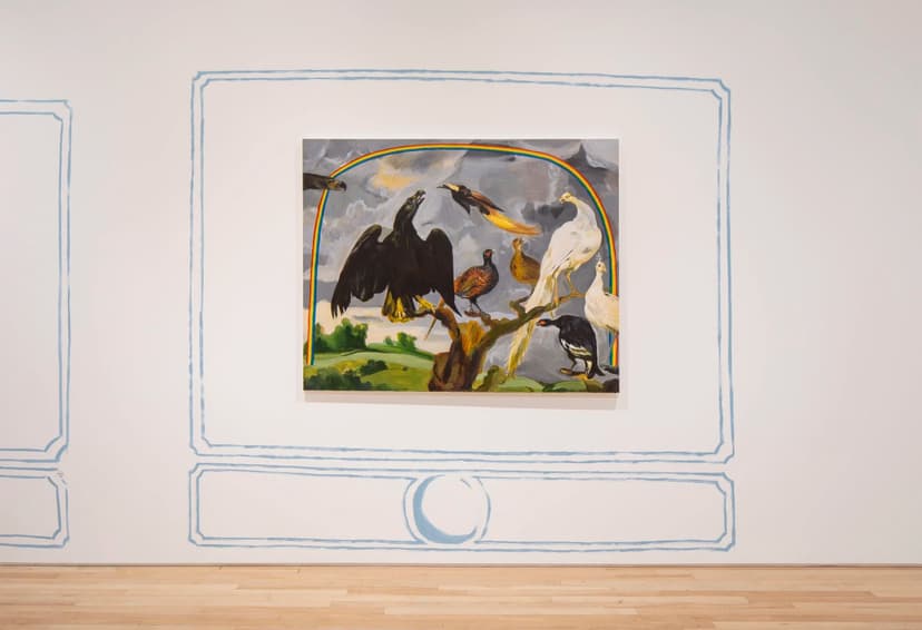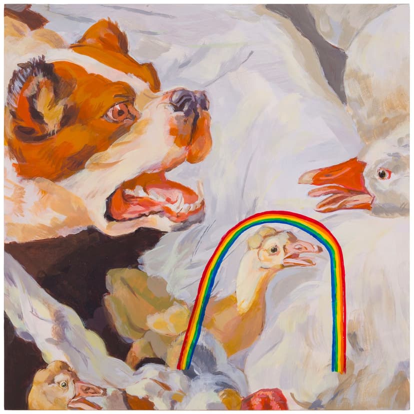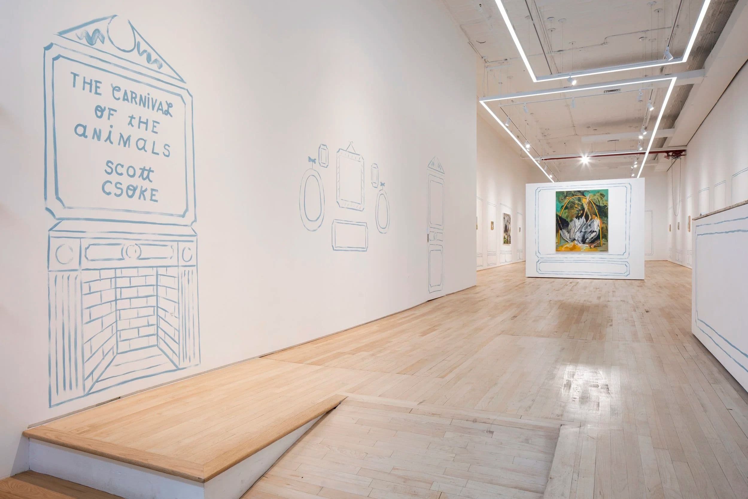 Sargent’s Daughters is excited to present Carnival of the Animals, Scott Csoke’s first solo exhibition with the gallery. Taking its title from the 1886 composition by Camille Saint-Saëns, the paintings appropriate and reframe art historical depictions of animals as expressive avatars of queer experiences. Presented in a site-specific installation by the artist, Csoke’s swans, hounds, and cranes play with ideas of decoration, gender, and humor.