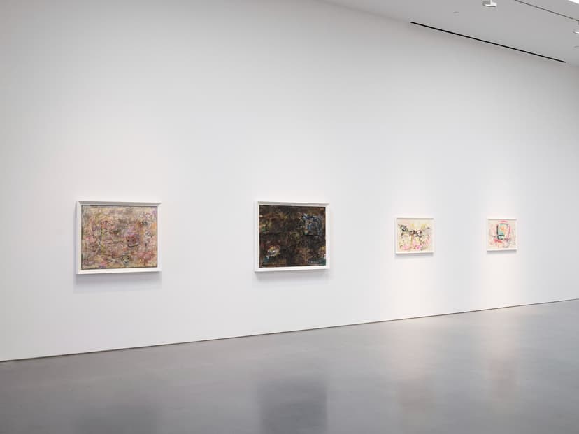 Lisson Gallery presents its first exhibition with Carolee Schneemann, marking her solo debut in Los Angeles. Centered on Video Rocks (1987), the show features an immersive installation of 180 sculptural discs and five video monitors inspired by a dream. Also on view are expressive preparatory drawings, a large horizontal painting, suspended light rods, and works from her Lebanon Series, including The Dust Paintings, which explore violence, memory, and materiality through layered, multimedia surfaces.