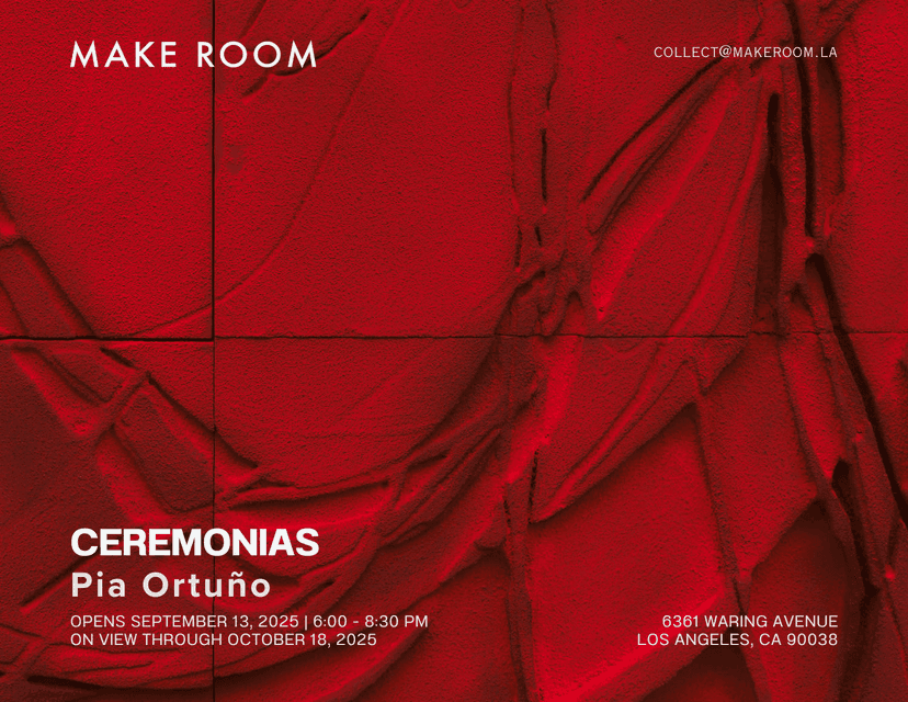 Pia Ortuño’s: Ceremonias at Make Room, presents abstract sculptures and paintings layered with marble powder and wood blocks that evoke landscapes, fissures, and volcanic force. Drawing from her Costa Rican roots, Catholic iconography, and indigenous traditions, Ortuño’s works oscillate between natural and spiritual references, embracing improvisation and duality while exploring belonging, memory, and cultural hybridity.