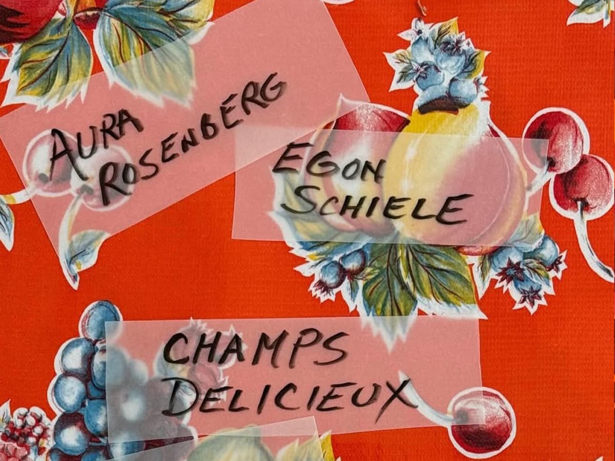 Aura Rosenberg and Egon Schiele: Champs Delicieuxpairs Rosenberg's new paintings on oilcloth with rare Schiele drawings, spanning over a century to explore eroticism as an entanglement of ordinary pleasures. Rosenberg's Champs Délicieux series responds to the decorative imagery of market-bought oilcloth — lemons, pastries, flowers — with gestural drips and splashes, mining American abstraction's erotic associations while contesting its modernist purity. Schiele's intimate figure drawings, made in the year following his 1912 imprisonment for moral corruption, distort the gendered body with urgent, unsparing directness.