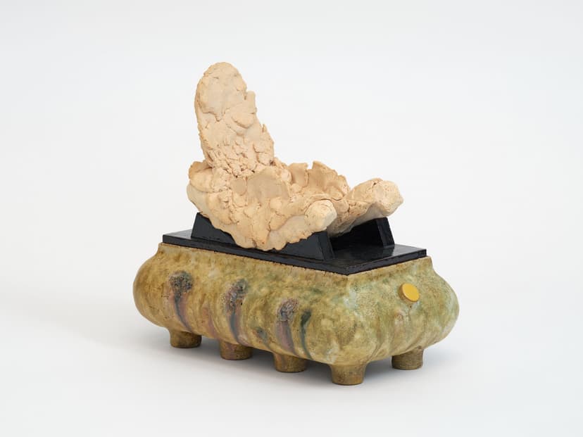 Parker Gallery presents Cloud Chips, its second solo exhibition with Los Angeles-based artist Zachary Leener, featuring nine new ceramic sculptures. Leener draws on personal memories, incorporating found materials and objects of significance into his clay forms. Each sculpture reflects a deeply personal, symbolic abstraction, where raw clay, heirlooms, debris, and studio remnants merge through improvisation and the transformative process of the kiln, resulting in works charged with material and emotional resonance.