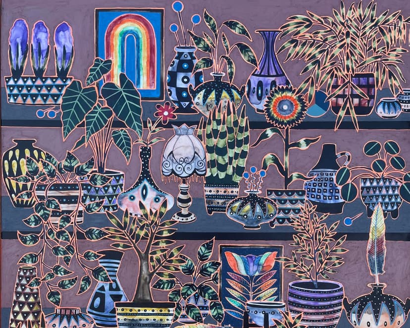 Morgan Lehman Gallery presents Collective Memories, Rune Christensen’s first solo with the gallery. His new paintings depict flowers, plants, and shelves as vessels for memory, reflecting fatherhood and domestic life. Each object captures a moment, while patterns inspired by global textiles and art traditions layer across surfaces. The work meditates on care, presence, and how ordinary experiences quietly accumulate meaning over time.