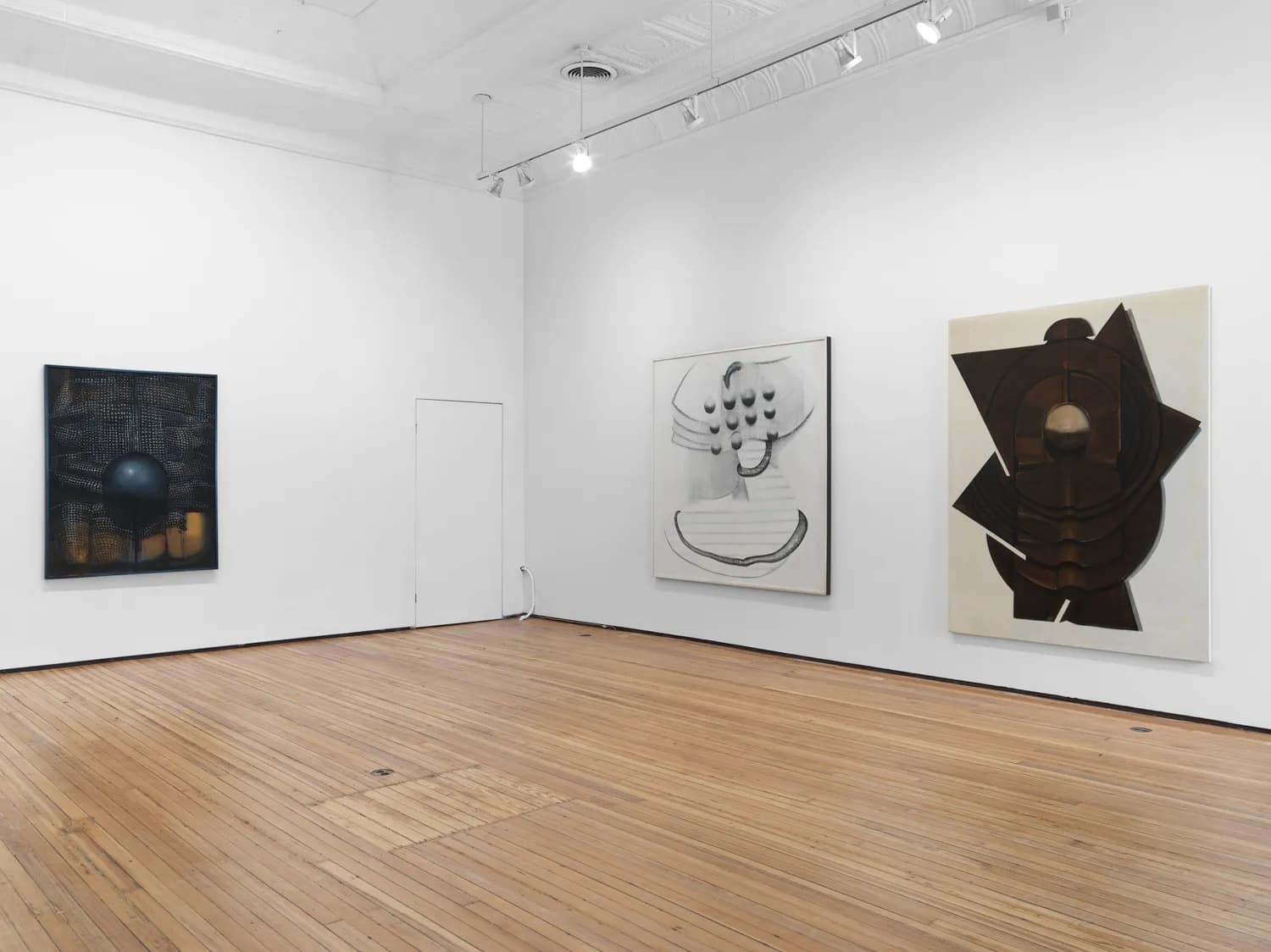 Constructed Tensions brings together Agustín Fernández, Jenny Snider, and Dorian Gaudin in an examination of pressure within form and structure. Fernández compresses biomorphic and mechanical elements into dense, regulated compositions. Snider translates urban architecture into rhythmic, modular fields of color. Gaudin’s steel wall works act as spatial drawings, suggesting frameworks under strain. Together, they present tension as intrinsic to material and geometry.