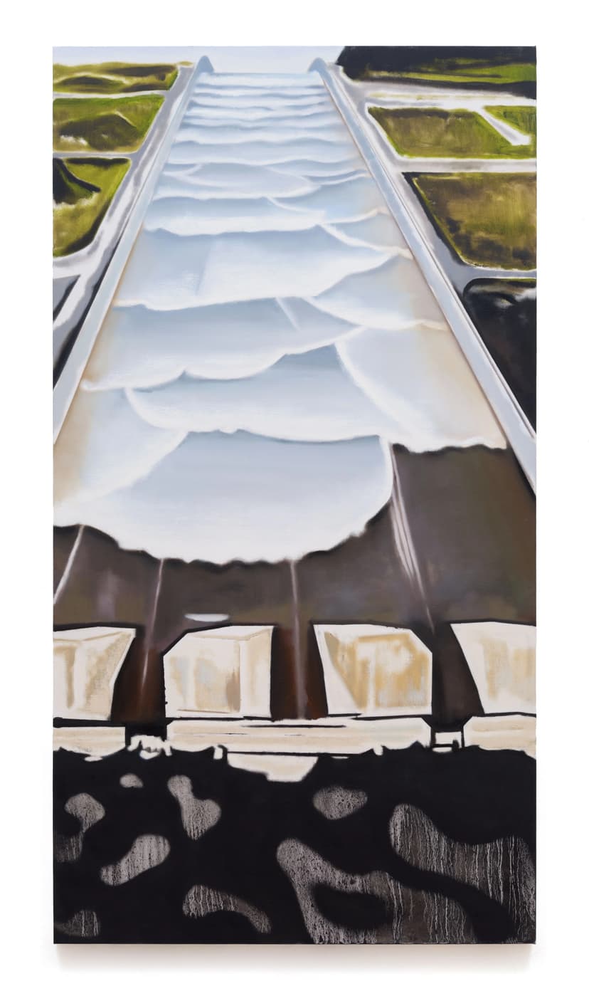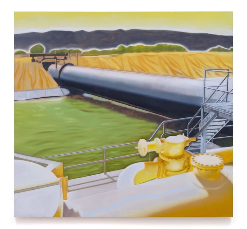 Luke Rogers’ paintings examine water, control, and infrastructure across California, from dams and aqueducts to household sinks. His works give equal weight to natural and manmade systems, capturing both utility and fragility. Through painterly mark-making, shifting palettes, and unresolved surfaces, Rogers conveys ecological tension and human impact, presenting a world where objects, environments, and forces coexist in uneasy equilibrium and continuous transformation.