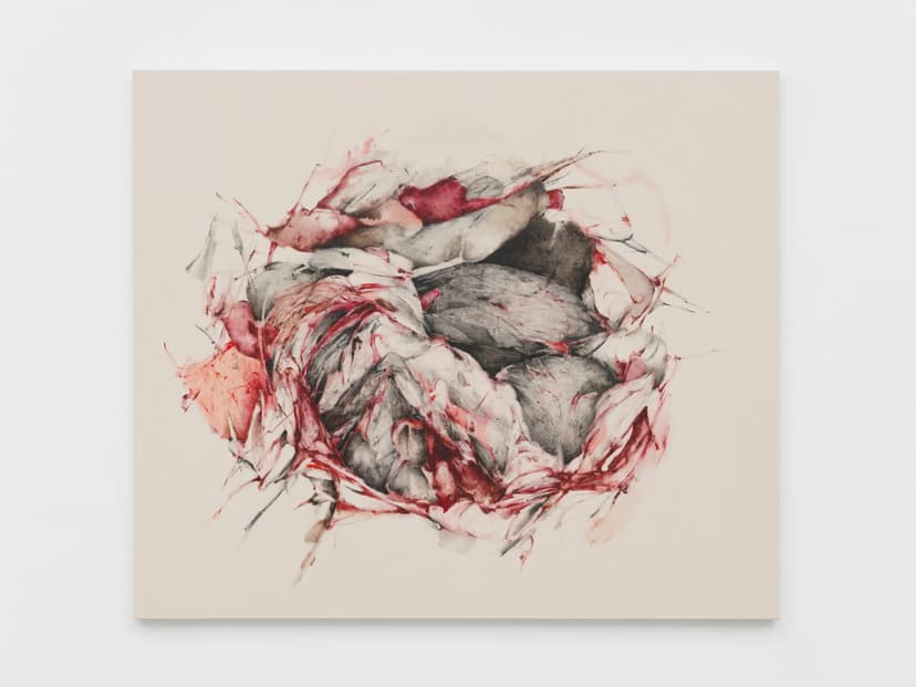 In her first solo exhibition in the United States, Christine Ay Tjoe presents a deeply introspective new body of work shaped by personal memory, emotional restraint and cultural expectations. Reflecting on family and grief, these paintings evoke a layered process of concealment—of covering and covering again — both emotionally and visually.