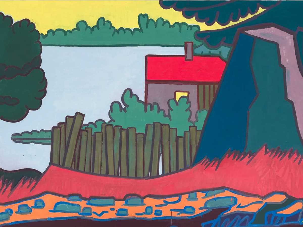 Creating Light presents late works by Los Angeles-based Austrian painter Hubert Schmalix, mostly produced in 2024 as the artist reflected on a life lived across Europe, Asia, and California. Chalets, mountains, forests, hills and flowers appear in a colorful, deliberate flat style, with a Pop Art directness that’s tempered by expressive line and brushed color. Schmalix’s works glow with intelligence, humor, and pictorial sensitivity, inviting a conversation across the picture plane. "I'm not a painter who paints the light," Schmalix said. "I create light through color. This is what defines painting."