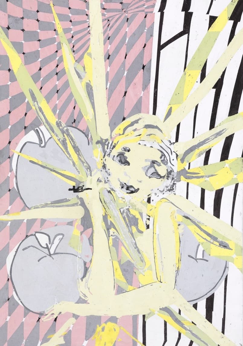 Carolin Eidner’s Daddy Dying Sun presents an exploration of perception, materiality, and transformation. At its core, Tribunal features faces that shift from welcoming to judgmental, framed by dissolving geometric structures. Using pigment-infused plaster and sanding techniques, Eidner creates hybrid works that merge painting and sculpture. Her approach challenges rigid forms, evoking tension between abstraction and narrative while inviting poetic interpretation through contrasting elements.