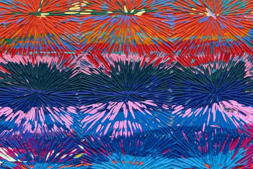 David Allan Peters at Royale Projects presents new paintings that expand his decades-long process of layering acrylic on plywood and carving intricate patterns. Inspired by California light and flora, his vibrant palettes and elaborate motifs evoke fireworks, gardens, and meditative landscapes, balancing chaos and control through the interplay of dense texture, vivid color, and precise structure.