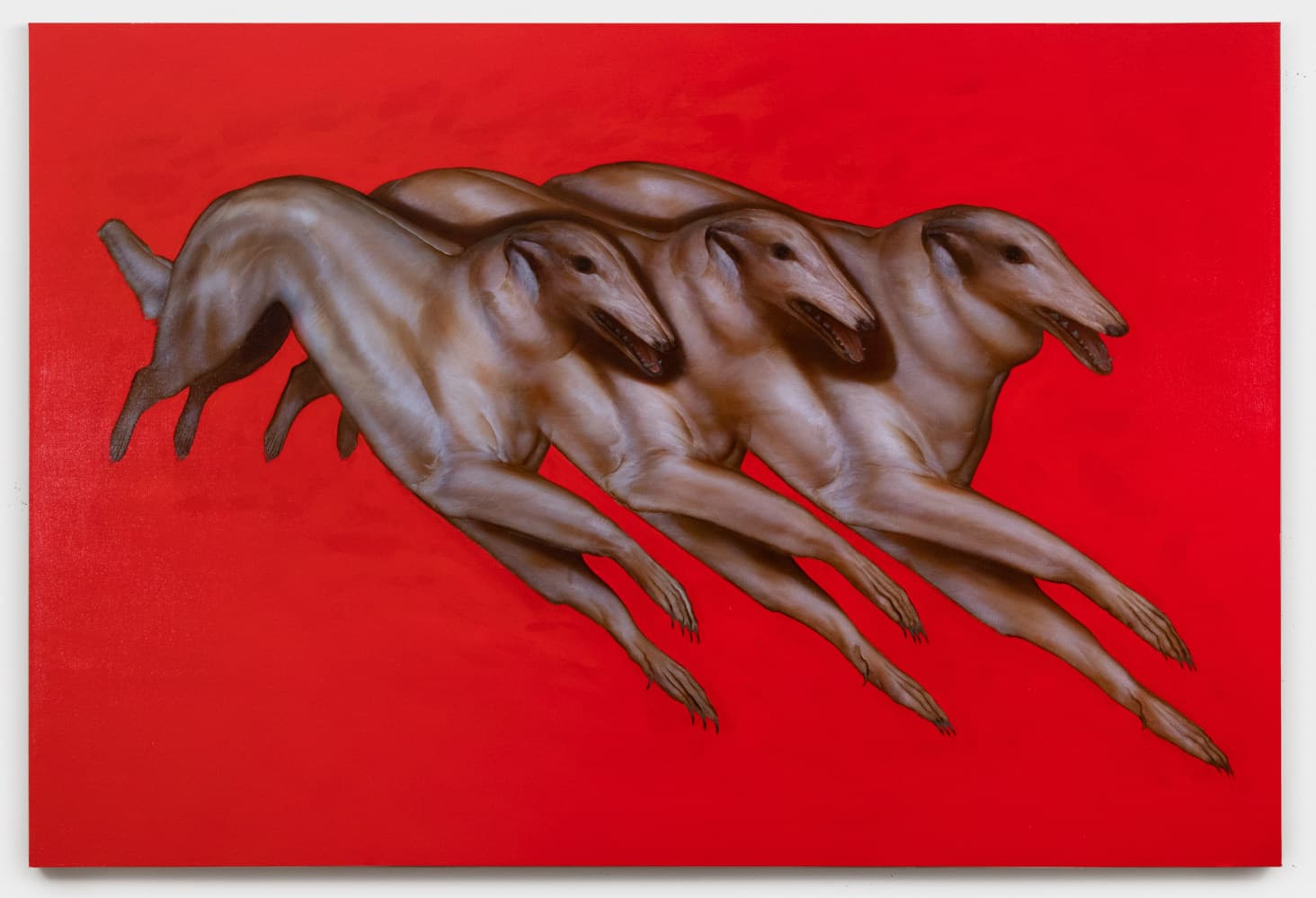 Rae Klein’s DOUBLECROSS at Nicodim presents enigmatic, dreamlike paintings suspended between clarity and ambiguity. Recurring images—chandeliers, women, dogs—appear both precise and elusive, echoing the tension of paradise lost. Her figures, frozen in moments of ecstasy or detachment, evoke a liminal state between awareness and oblivion. Klein’s work navigates the delicate space of choice, uncertainty, and the beauty found in never fully knowing.