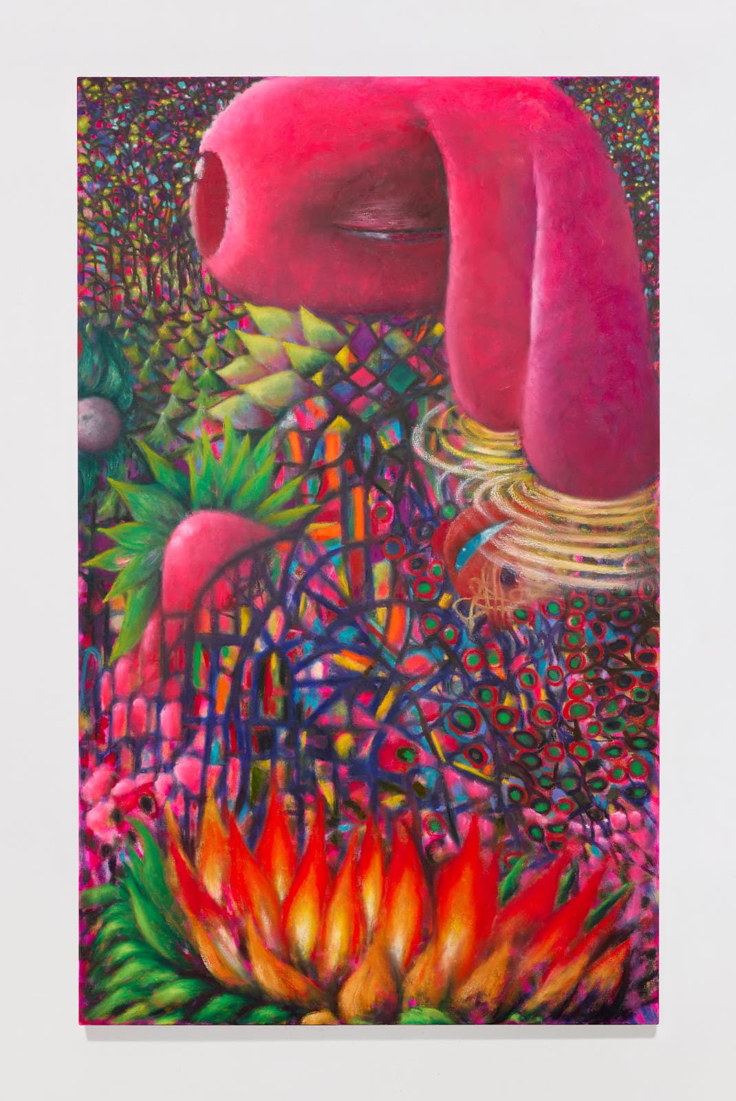 Broadway presents Drink Me, a solo exhibition of new paintings by Mie Yim. Created over the past year, these works capture Yim’s expressive energy, shaped by her journey from South Korea to New York. Vivid bursts of color and layered textures conjure shifting forms—eyes, fur, reptilian skin, and flickering lights—evoking the immersive, physical intensity of a dancefloor. Moving between scales and perspectives, her paintings engage memory and sensation, inviting viewers into a dreamlike exploration.