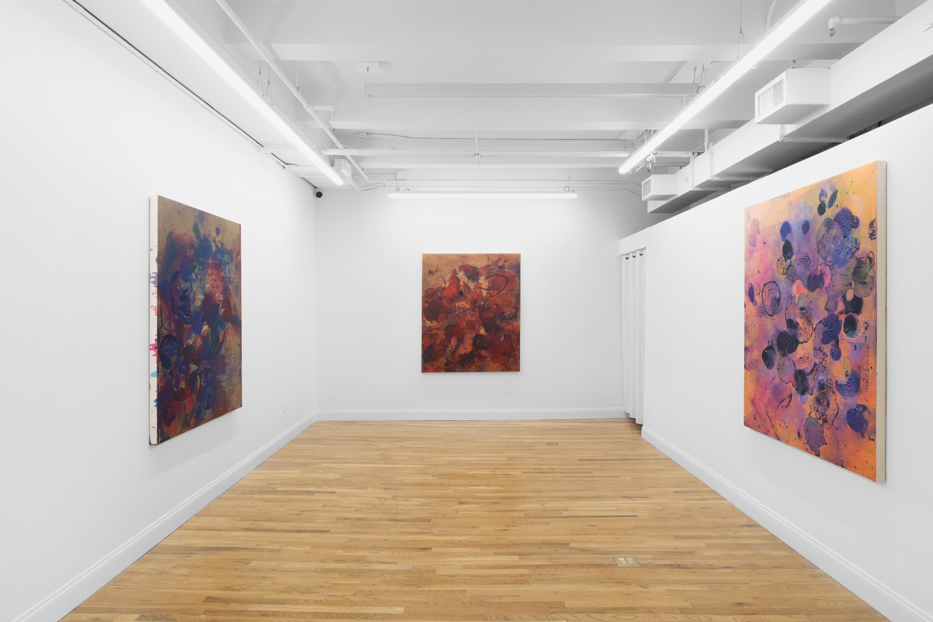 RAINRAIN presents During an Eternity, Jameson Magrogan’s first solo exhibition. He sculpts paint into the canvas, creating ridges, perforated textures, and stratified surfaces that shift between opacity and translucence. Through layered, durational processes, forms emerge, dissolve, and reconfigure, producing a disorienting interplay of figure and ground. The works challenge perception, revealing a paradoxical logic where surface, depth, and time constantly fluctuate.