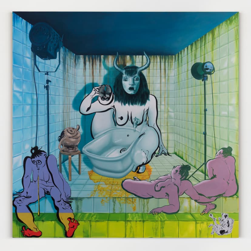 Magenta Plains presents Ebecho Muslimova & Maria Lassnig, an exhibition exploring the psychological and physical experience of the body. Muslimova’s bold, cartoon-like depictions of her character Fatebe contrast with Lassnig’s expressive, gestural paintings, yet both artists examine vulnerability, self-exposure, and transformation. Referencing mythology, sci-fi, and bodily perception, their works challenge expectations of femininity, using the body as both subject and medium for self-exploration.