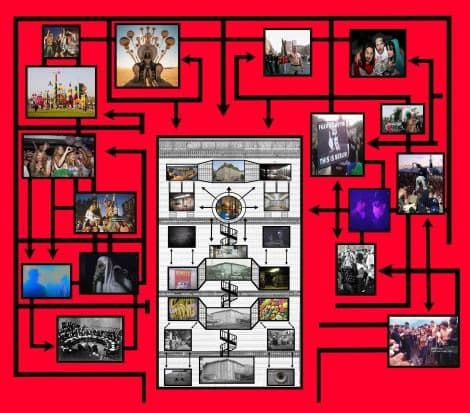 Nick Angelo: Edifice at Sebastian Gladstone presents large-scale works tracing how underground cultural movements are absorbed by institutions and capital. Using commercial banner prints, purloined images, and ambiguous diagrams, Angelo reflects on rave culture, spectacle, and historical rupture. With no soundtrack and little explanation, the exhibition resists easy interpretation, urging viewers to confront cultural memory, loss, and complicity in the present political landscape.