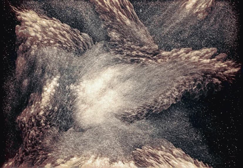 Imagine Inscape is a woven wool tapestry by Edith Dekyndt with Unfold, developed from a 3D scan of fossilized wood. AI-generated geometry fills the fragment’s voids, linking geological time with digital speculation. The work considers material memory and the boundary between natural remnants and technological intervention.