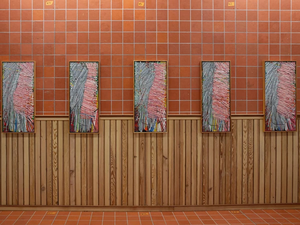 Entrance presents encaustic paintings by Zachary Armstrong installed within a site-specific intervention, alongside new work by his son, Jackson Maximo Armstrong. Engaging the neighborhood's culture and history, Armstrong reconstructed glazed orange tiles—ubiquitous in Lower East Side and Chinatown kitchens and seafood facilities—in his signature encaustic technique, extending the floor tiles onto the wall alongside hand-fabricated wainscoting and shelving. Eight new paintings hang in this environment Armstrong built, abstract works that began from a childhood sketch and cracked open a freedom he had never before allowed himself.