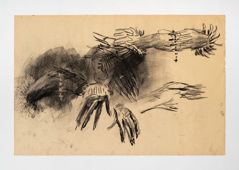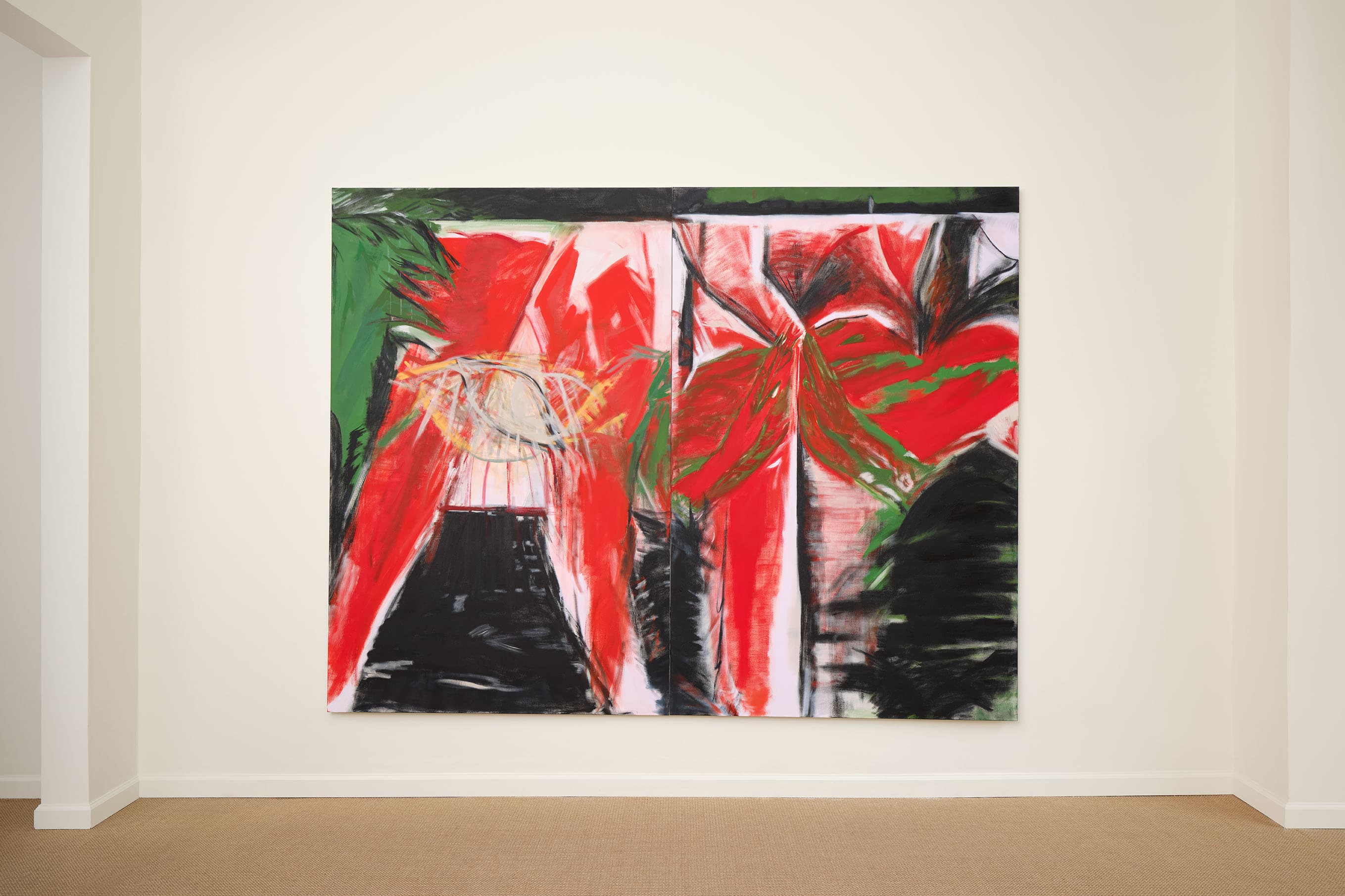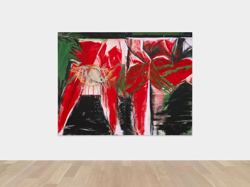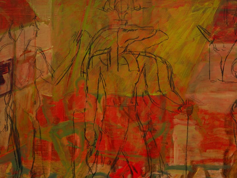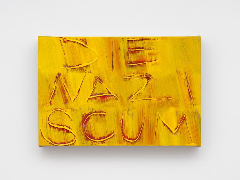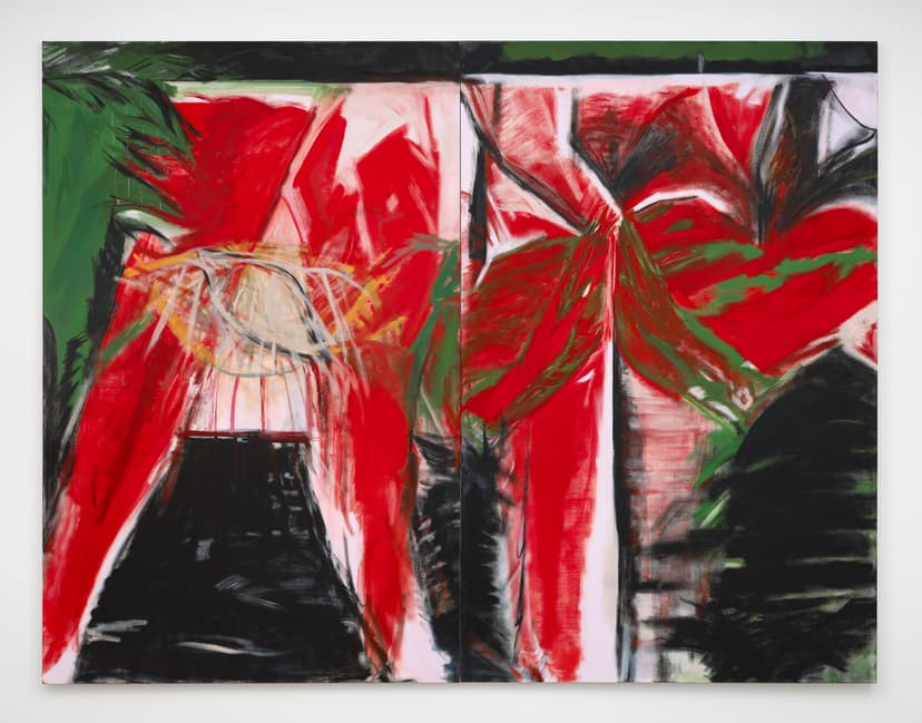 EROS RED NIGHTS is a solo exhibition of work by Sydney Acosta. Visceral and textured, the paintings use a strict palette of saturated reds and greens, stark whites and blacks—avoiding realism in favor of emotional immediacy. They emerge from the night, the club, the street. Acosta’s fast, dry-brush technique pushes oil painting toward the speed of drawing, evoking the feel of charcoal. Ancient motifs appear beside urban memory—bricks, blood, concrete. Die Nazi Scum links gesture to political history in Los Angeles. She resists abstraction: hands, rosaries, and deities are drawn from life. Red and green become metaphors for desire and duality—like streetlights on wet pavement or flags at a protest—harsh, sensual, and unfiltered.