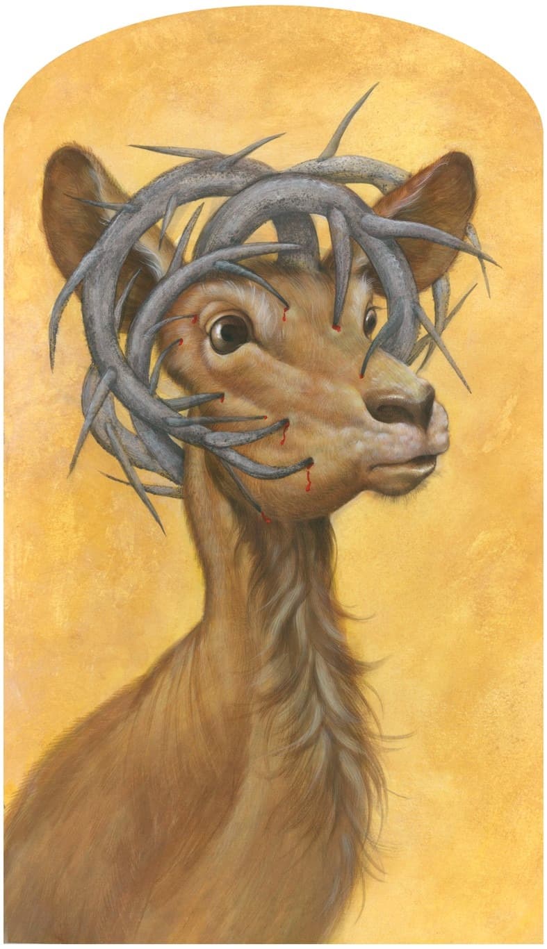 Evolution brings together decades of work by Anita Kunz, pairing her iconic editorial illustrations with deeply personal paintings. Across these works, evolution appears as an ongoing biological, emotional, and cultural process rather than a linear path. Humans and animals meet in states of metamorphosis, care, and survival, dissolving species boundaries. From maternal tenderness to satirical portraits of public figures, Kunz frames change as driven by empathy, memory, and continual reinvention.