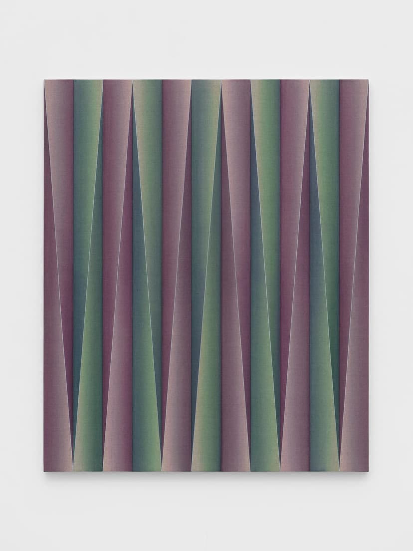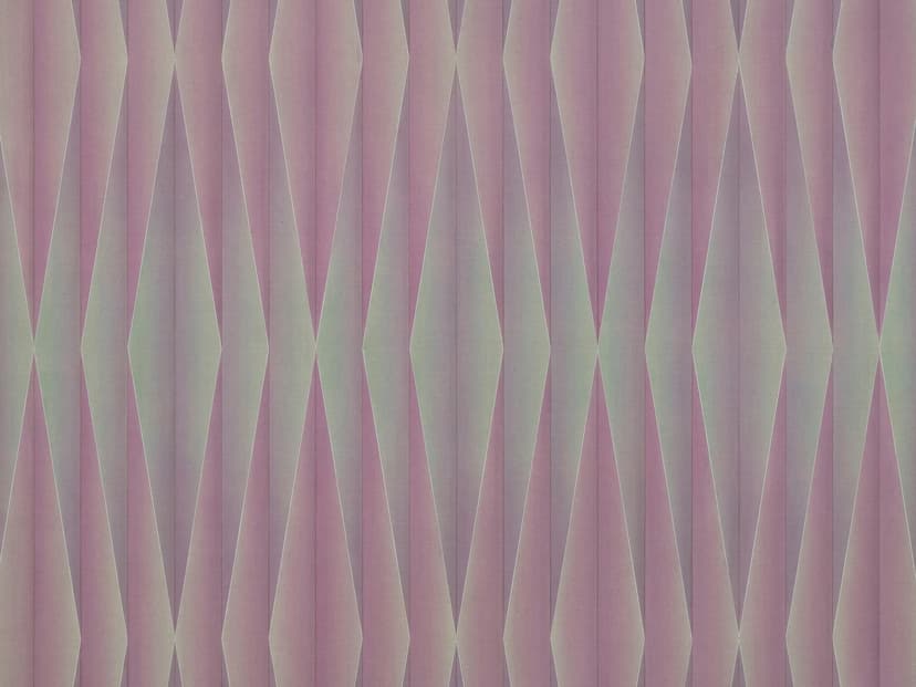Suzanne Song’s abstract paintings merge geometric logic with tonal gradations to question how perception shapes experience. Rooted in printmaking, her meticulous process employs grids, folds, and shifting hues to create illusionistic surfaces that oscillate between depth and flatness, movement and stillness. Drawing from Op art, Minimalism, and Eastern traditions, her new works embrace colour to explore emotion, uncertainty, and the impermanence of perception.