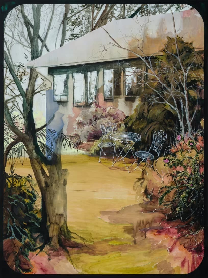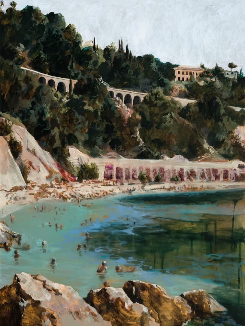 Salty and Dark is a solo exhibition by Noelle Phares that reflects a shift toward more personal subject matter while continuing her focus on ecological concerns. Created during pregnancy and a residency in southern France, the works explore motherhood, identity, and human interaction with nature. Architectural forms and landscapes merge with softer palettes and feminine symbolism, capturing both environmental and emotional terrain shaped by change, tension, and unexpected beauty.