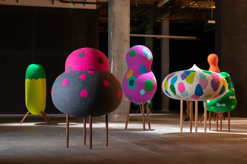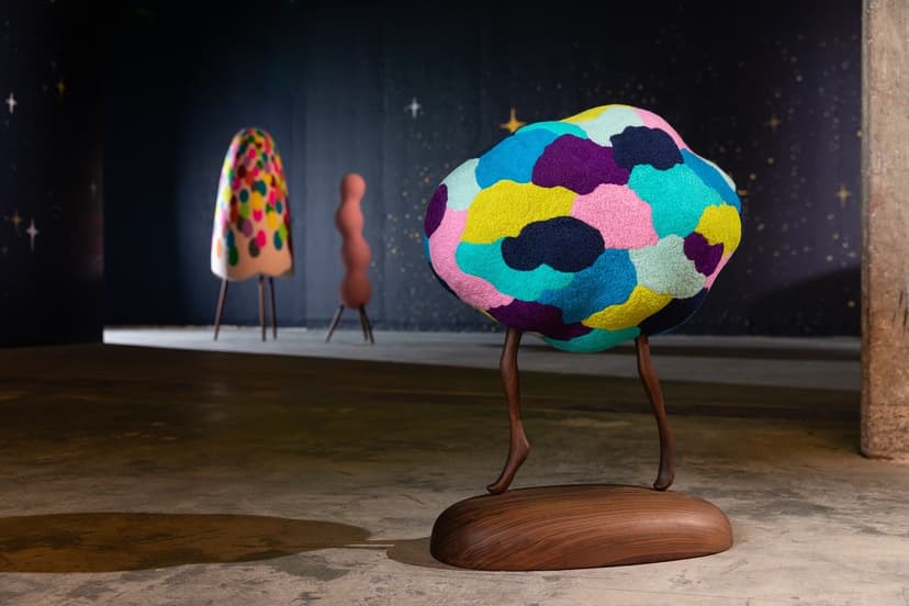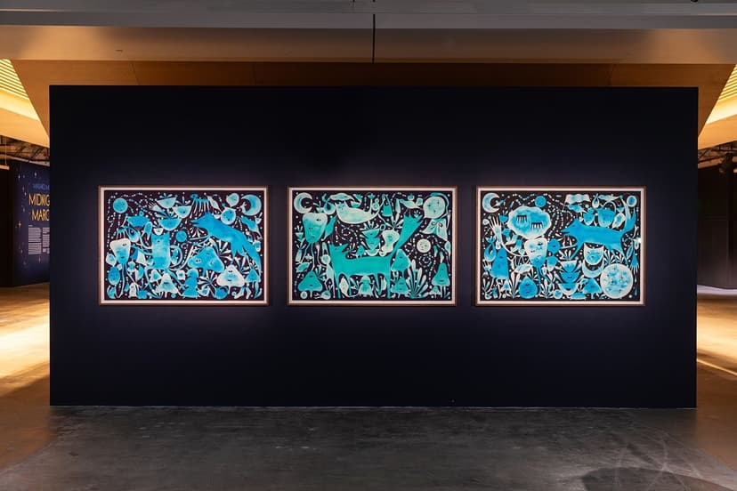 Midnight March, the first fully site-responsive exhibition at ICA SF's The Cube, features Masako Miki’s largest presentation to date. Her two- and three-dimensional practices come together as her "Night Parades" paintings take on immersive form. Visitors move through a darkened space filled with felted figures under starry indigo walls, encountering a surreal world that embraces difference and transformation through movement, light, and shadow.