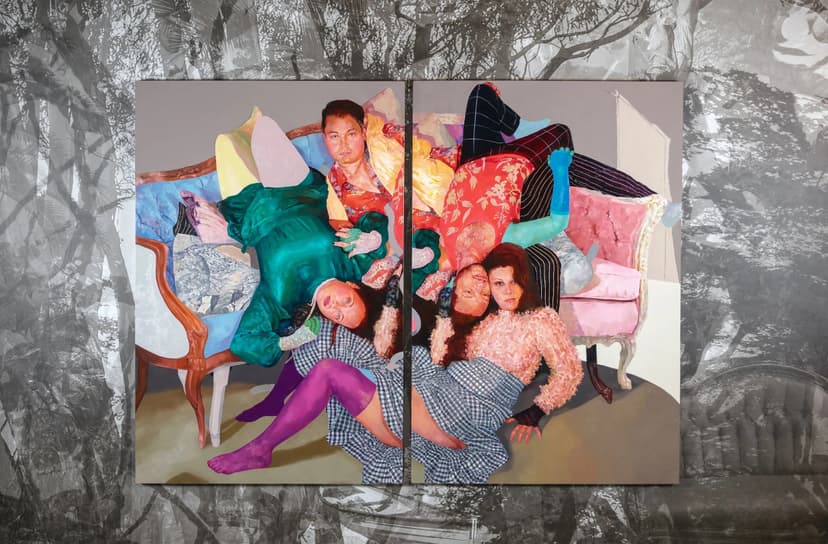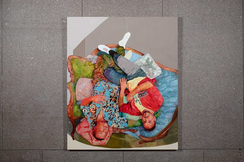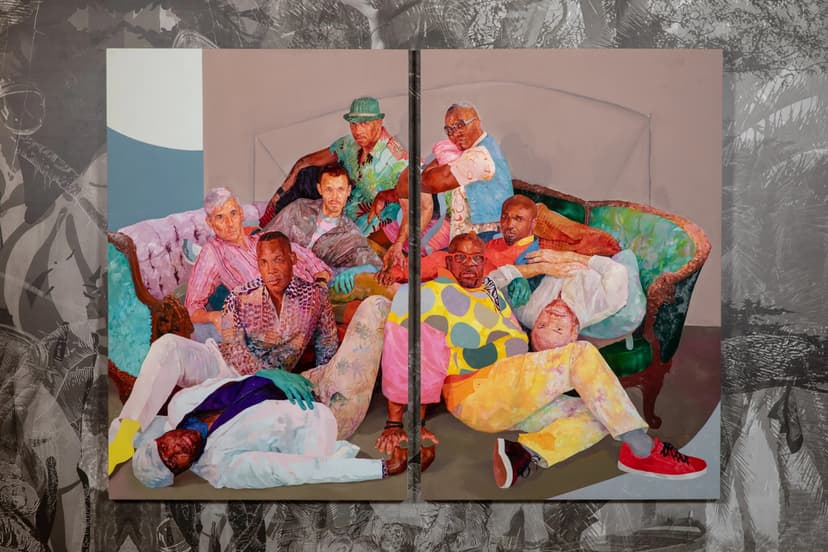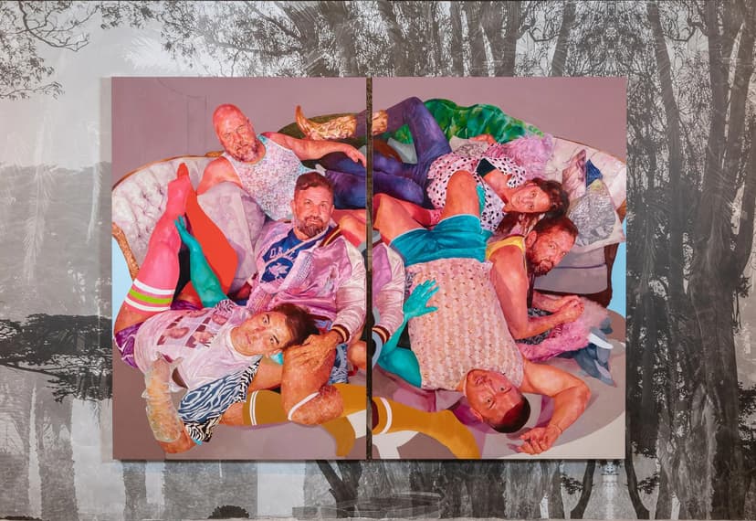 David Antonio Cruz’s stay, take your time, my love brings together portraits from his chosenfamily series with newly commissioned works for ICA SF. Through painting, drawing, and installation, Cruz honors queer kinship and collective care, capturing intimate, celebratory moments rooted in community. His layered, surreal compositions—set against custom wallpaper—respond to San Francisco’s LGBTQ+ histories while affirming love, safety, and presence amid ongoing threats.