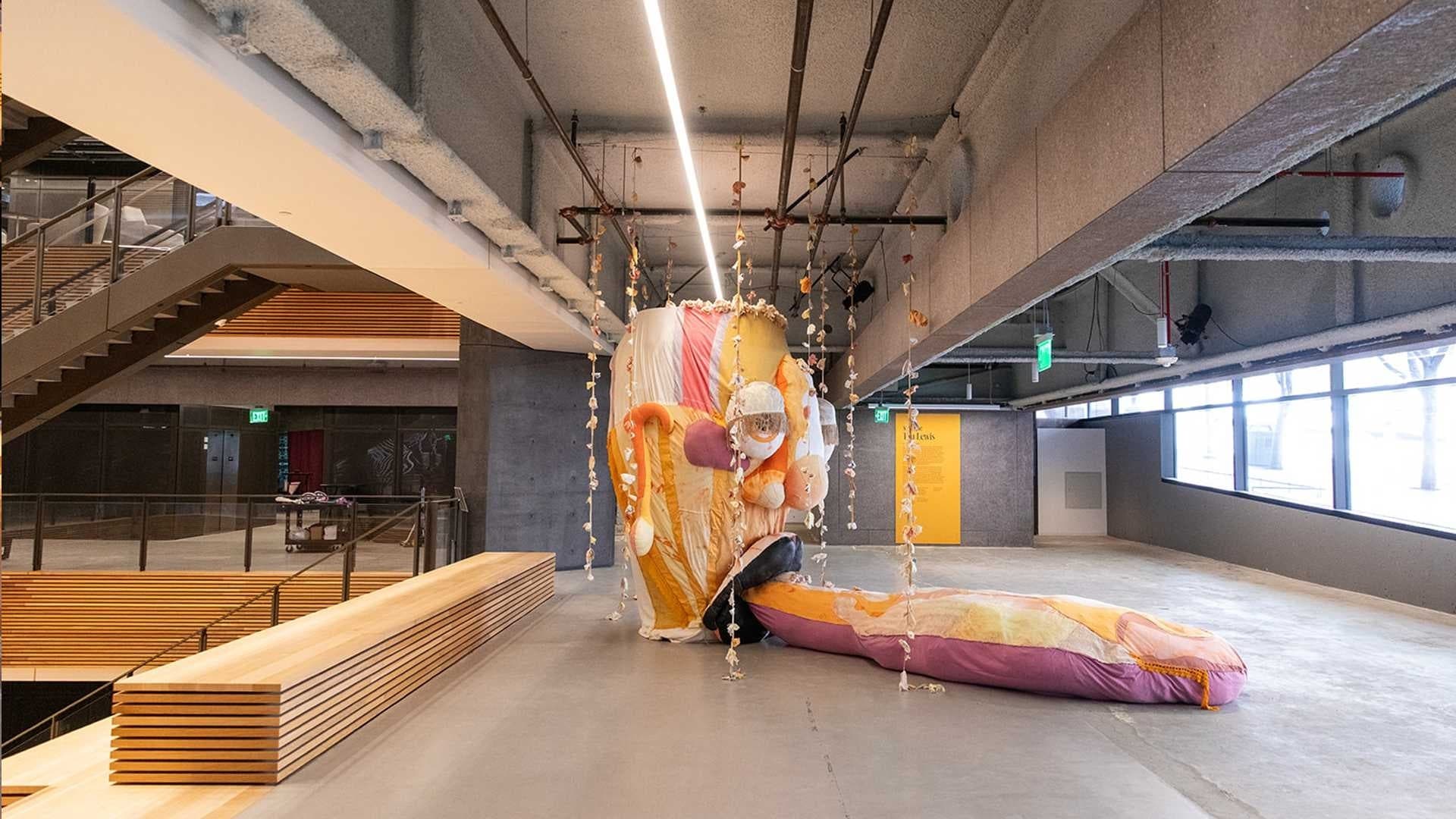 Tau Lewis creates large-scale sculptures from repurposed textiles using quilting, dyeing, and assemblage. Drawing from African diasporic practices, she stitches together memory, history, and care. Opus (The Ovule), part of her imagined world T.A.U.B.I.S., represents knowledge, transformation, and collective growth. This figure merges human and botanical forms, suggesting a utopia beyond gender and hierarchy, rooted in compassion and ancestral connection.