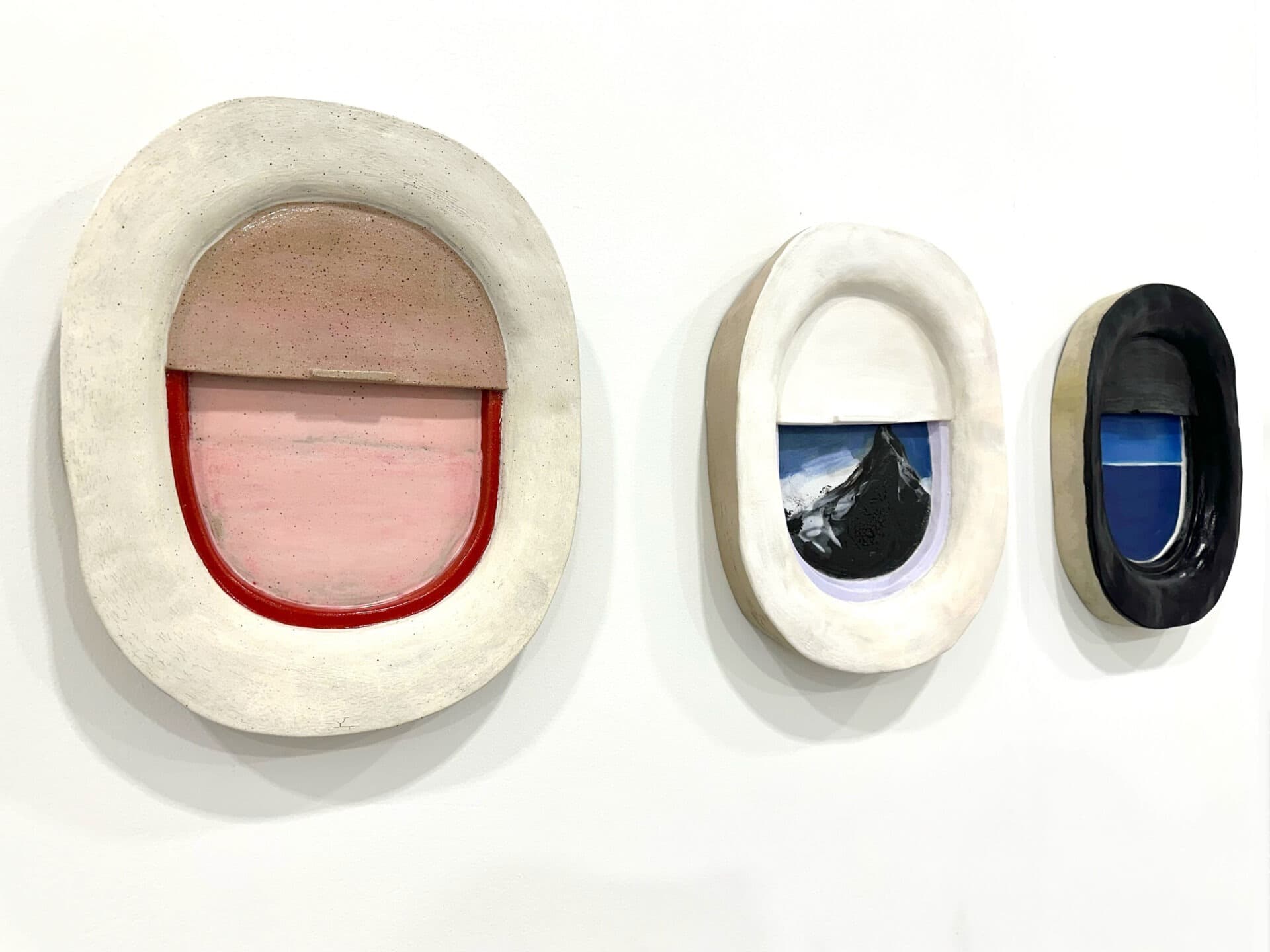 Johansson Projects presents Window Seat, featuring C.J. Chueca’s hand-built ceramic airplane windows. Each piece evokes the shifting experience of flight, with variations in color reflecting different times of day. Referencing Chueca’s personal migrations between Mexico, Peru, and the U.S., the fragile ceramic forms capture the emotional and physical in-betweenness of travel, inviting reflection on perspective, movement, and the liminal space between places.