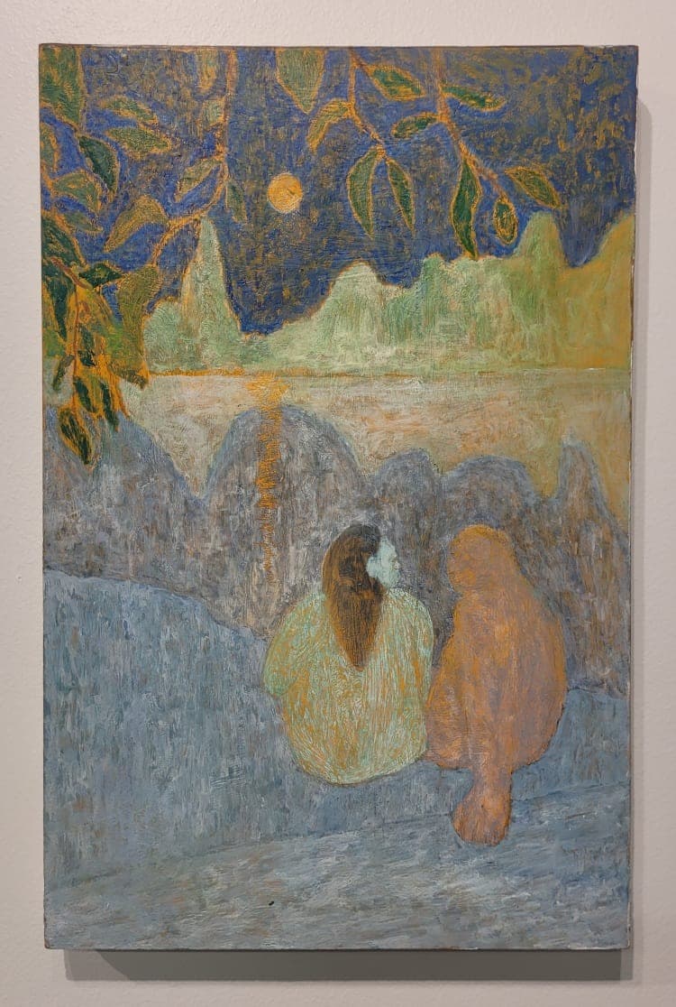 Municipal Bonds is proud to announce Yesterday as in Tomorrow, the first U.S. solo exhibition by Danish-Filipino artist Daniel Cabrillos Jacobsen, on view in the gallery’s annex from July 10 to August 23, 2025. The exhibition features a body of small oil paintings—on canvas, wood, burlap, and a book cover—that speak to intimacy and recollection in relationship to place. In Cabrillos Jacobsen’s work, place is interior and exterior, personal and inherited—shaped by geography, daily experience, and memory. Its presence emerges through return, gesture, and time folded into form.