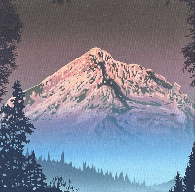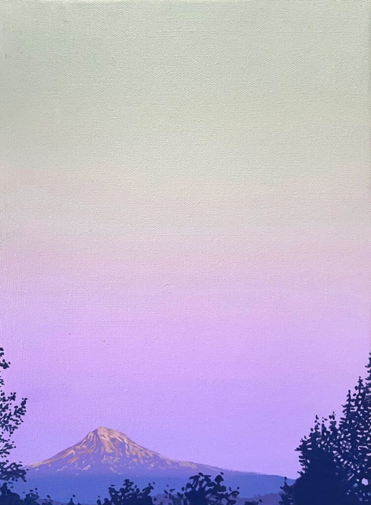 Rena Bransten Gallery presents 36 Views, a solo exhibition of small-scale paintings by Robert Minervini. Inspired by Hokusai’s iconic series, these works portray imagined and real views of Mount Hood. Delicate and immersive, the pieces capture a sense of stillness and awe found in nature. Despite their size, they convey expansive beauty, inviting quiet reflection through soft color, thoughtful detail, and a deep engagement with landscape.