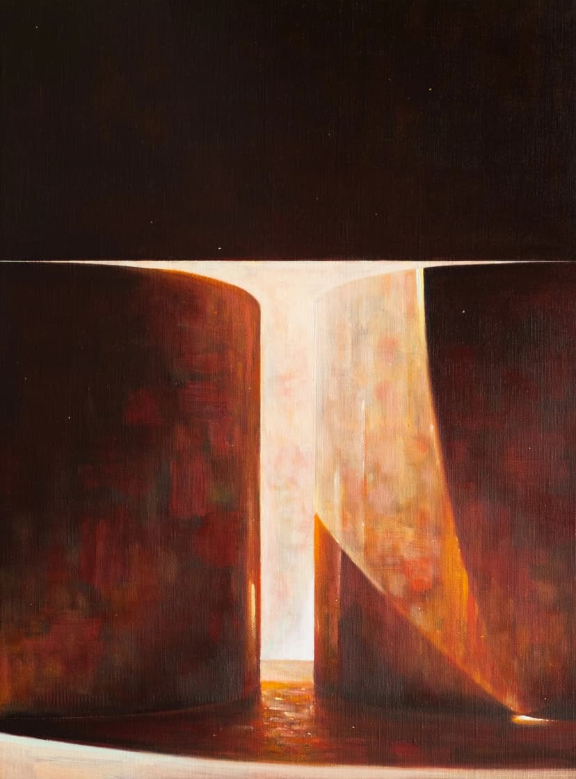 Flat is a solo exhibition by Szelit Cheung. Through oil paintings on linen and wood, the artist examines the relationship between presence and emptiness, rendering luminous architectural spaces devoid of figures. Working from cardboard models and studies of light in Hong Kong and Melbourne, Cheung explores how illumination and shadow shape spatial perception and transform flat planes into volumetric form.