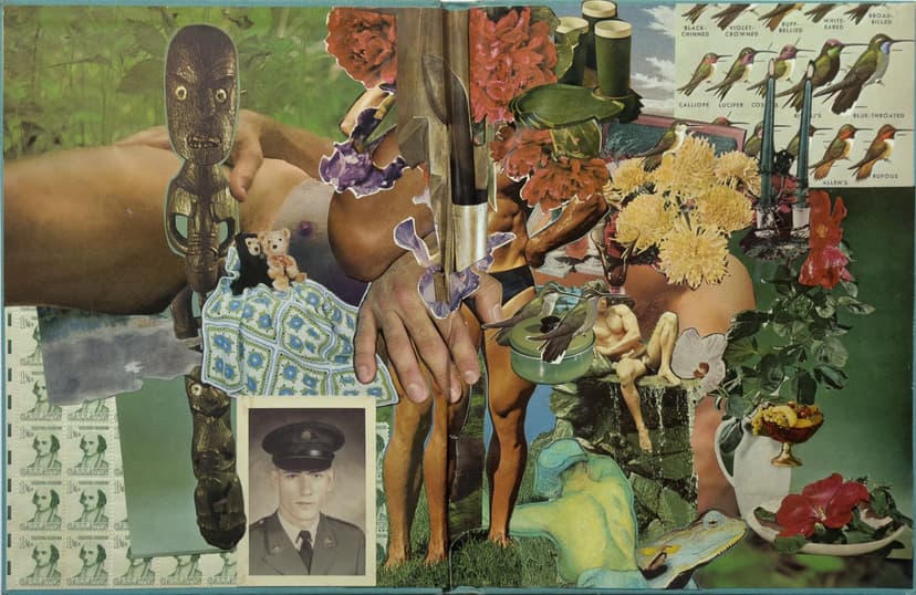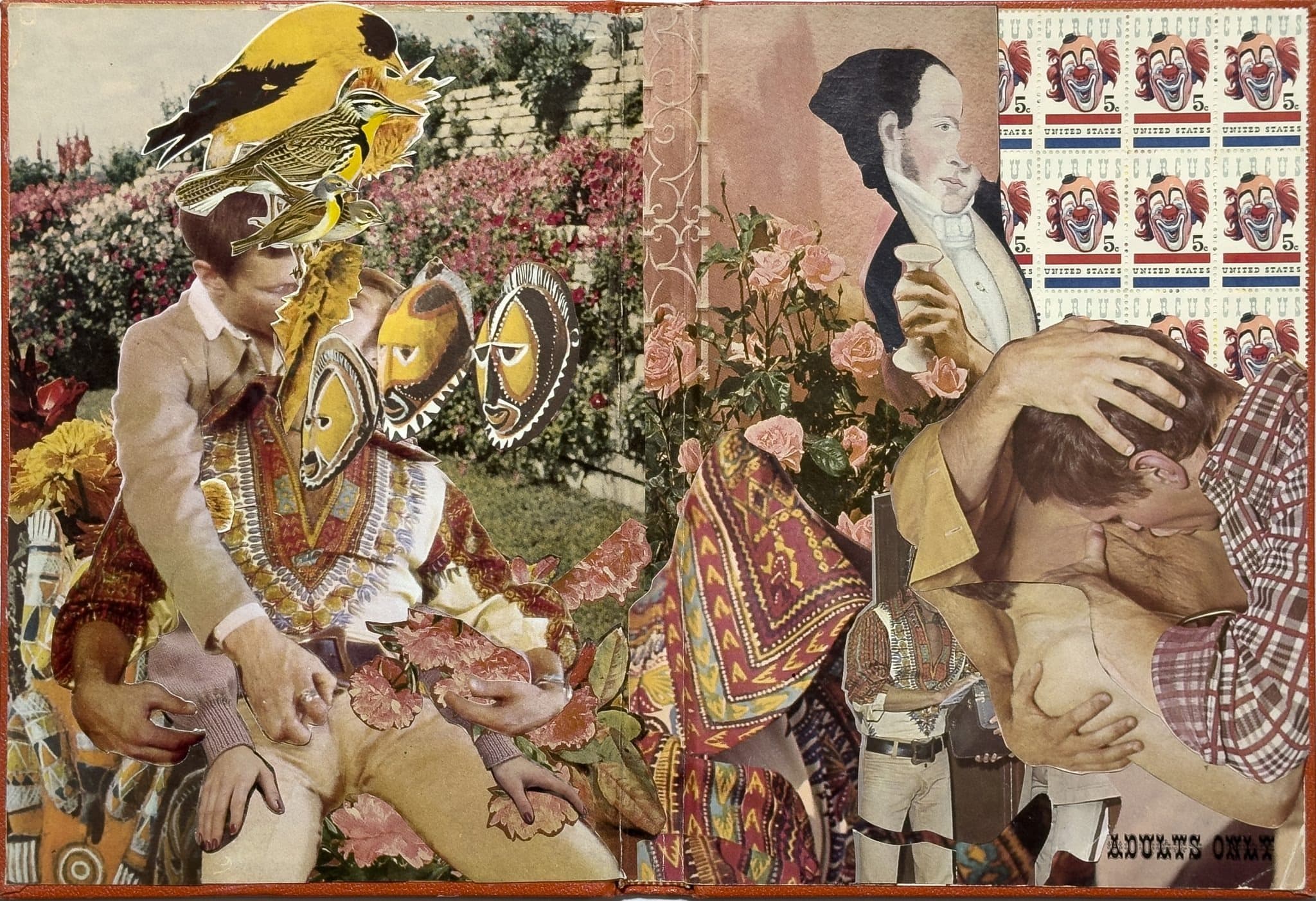 Aaron Krach: Four-Page Books transforms vintage book covers into 14 collages from 2024–2025, merging archive, scrapbook, and dream. Each four-page work combines humor, camp, and longing, pairing disparate images—kittens, bodybuilders, Pop Art, and classical statues—into miniature sculptural books that explore desire, absurdity, and cultural memory while preserving the form and identity of the original covers.