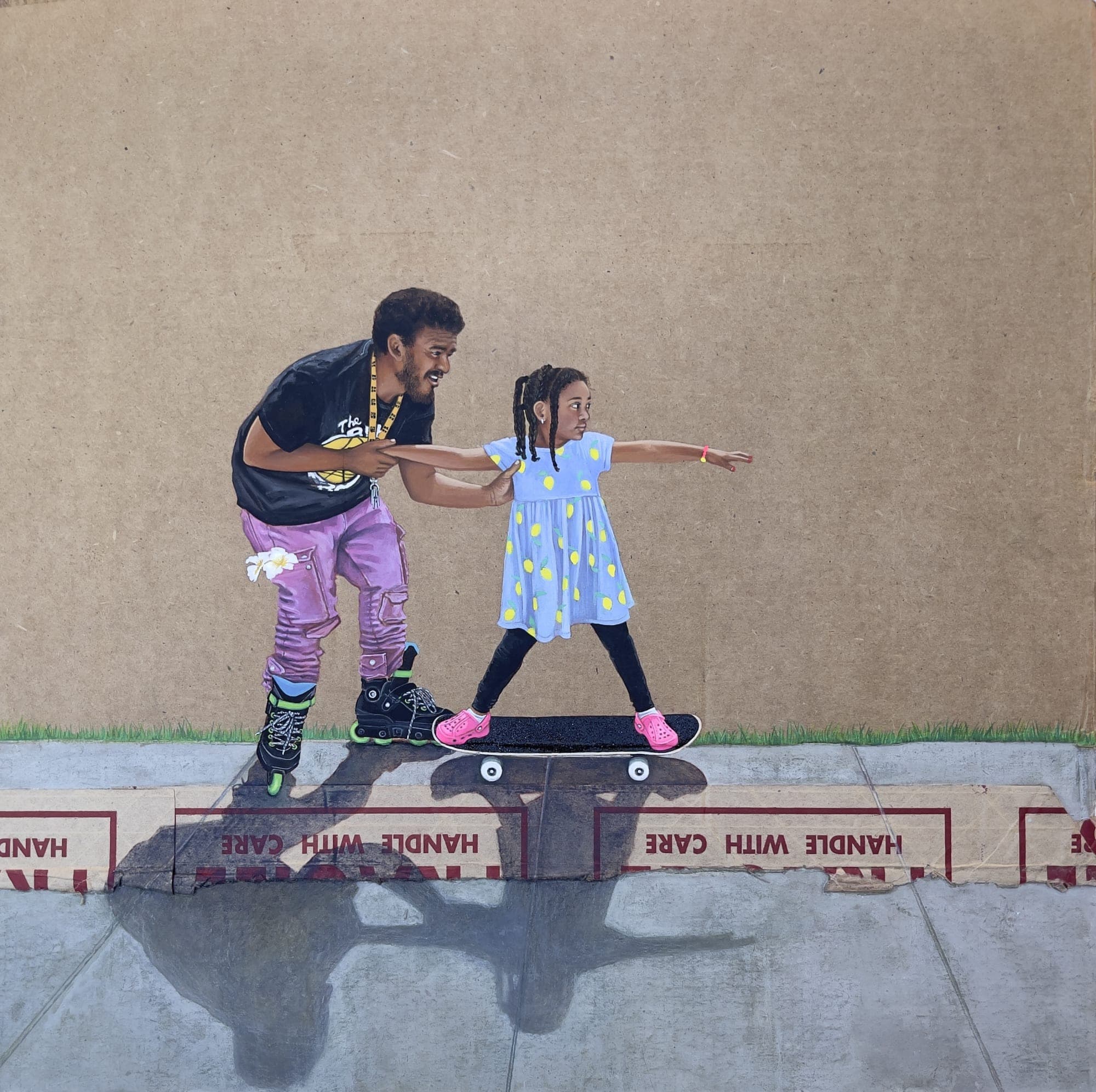 Trotter&Sholer presents Freedom Being, a solo exhibition by Yvette Molina. Painted in egg tempera on found cardboard, her works depict friends and strangers in joyful acts—dancing, resting, roller-skating, or protesting. For Molina, freedom is a conscious, embodied state of presence and play. Her paintings, rooted in chance encounters outdoors, celebrate joy as essential, reminding us that freedom can be found in shared, everyday moments.