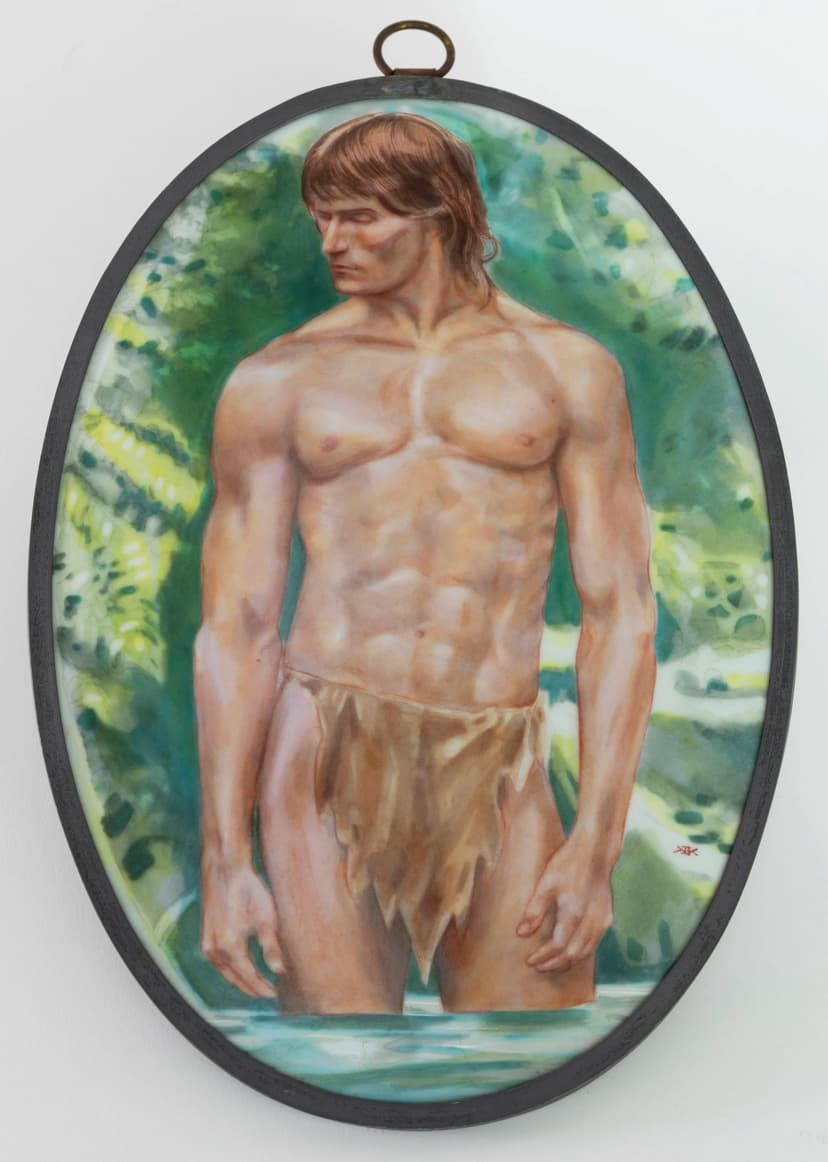 Friends, Acquaintances, and Idols presents Kenneth Kendall’s exuberant enamel miniatures of Hollywood figures, friends, and personal heroes. Working on porcelain with meticulous multiple firings, Kendall combined technical mastery with camp and queer-coded expression, navigating fame, desire, and counterculture. His portraits reveal both his artistry and interior life, asserting identity and playful rebellion in mid-20th-century Los Angeles.