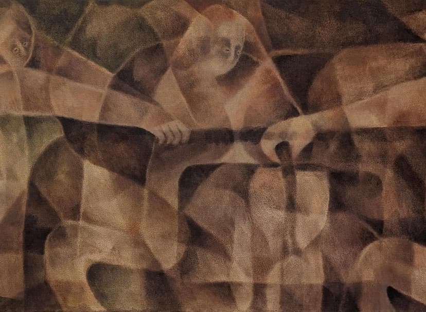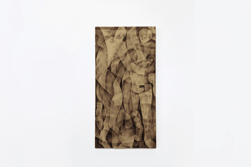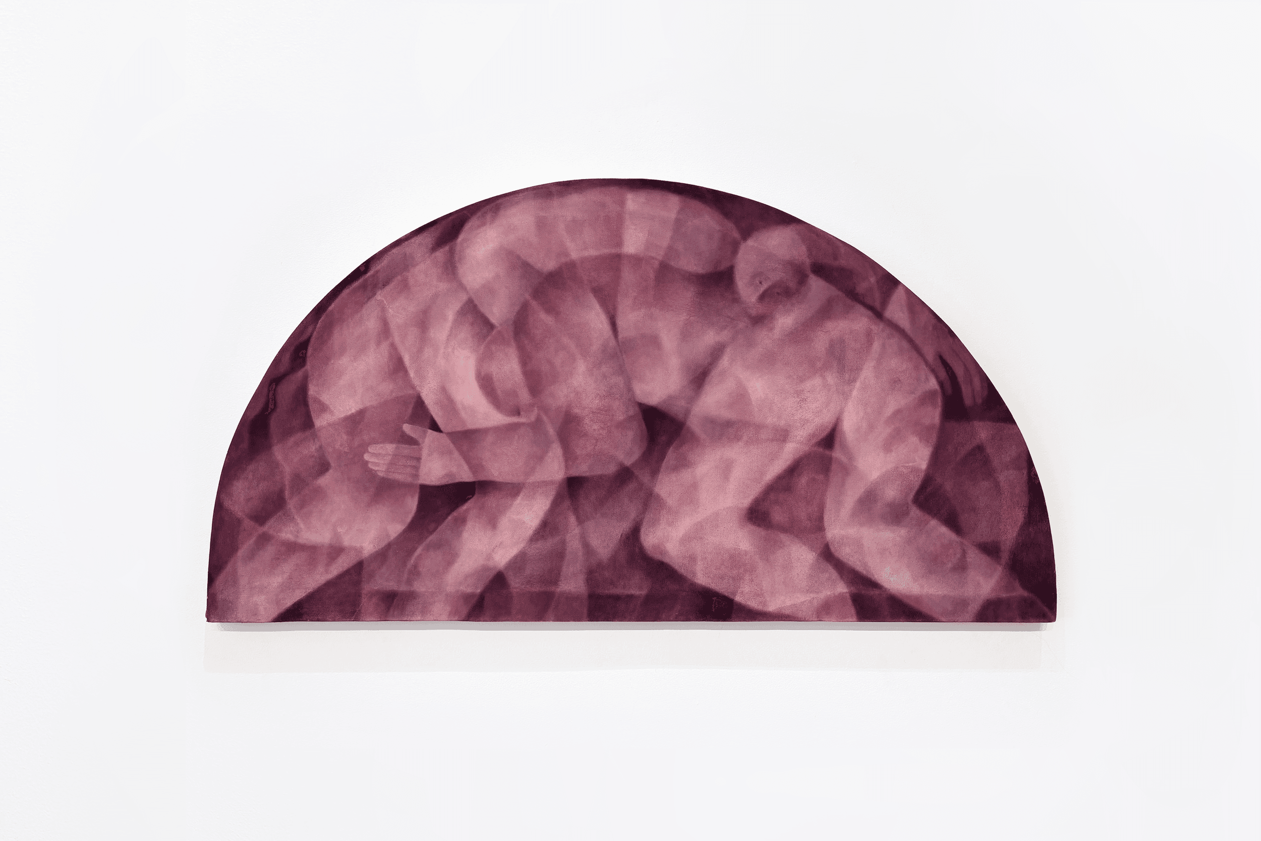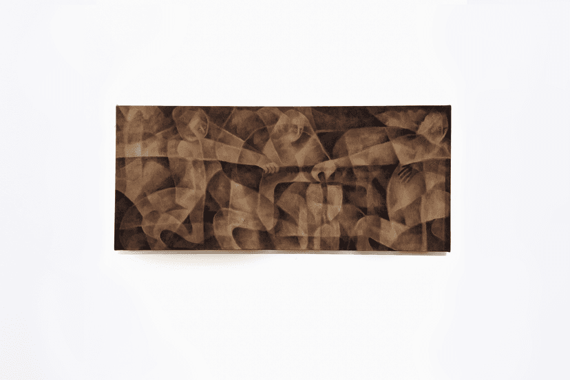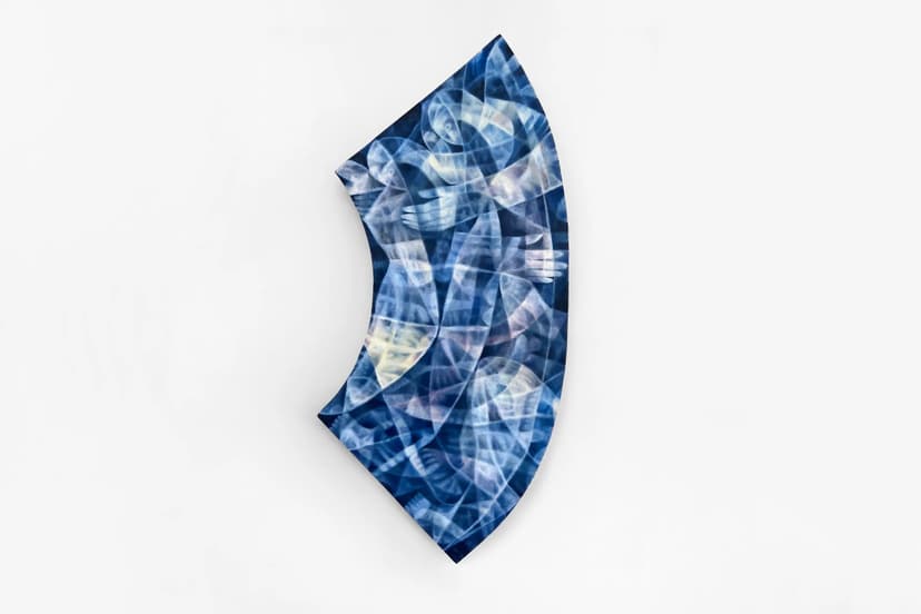 Olivia Springberg presents an array of paintings that transform geometry and color into spiritual structures. Her compositions range from traditional rectangles to shaped canvases inspired by religious symbols, geoglyphs, and ancient scripts. These forms reflect a deep interest in abstraction’s power to hold meaning and presence.
