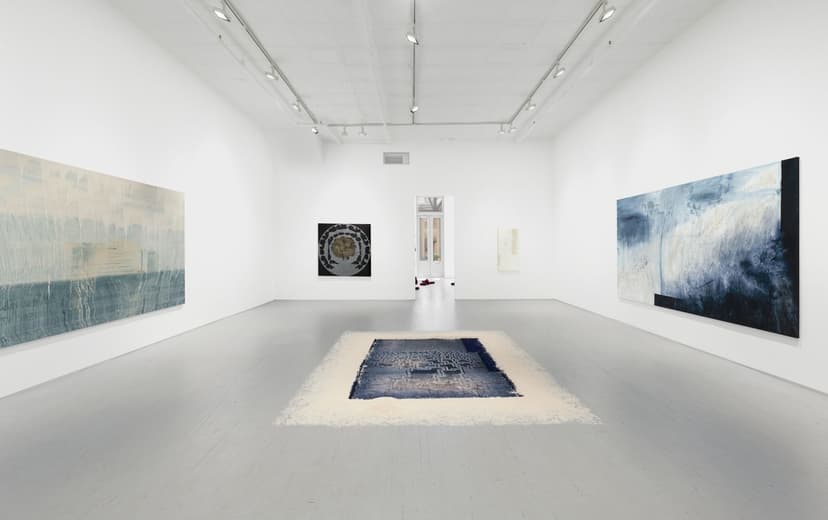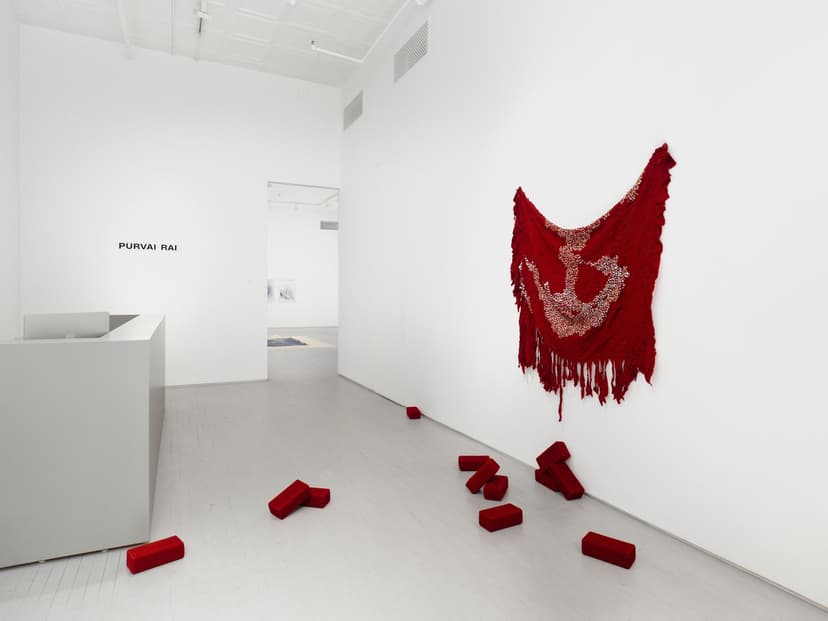 Purvai Rai’s Gestures of Infinity presents sculptural works shaped by devotional, intergenerational techniques such as weaving, stitching, dotting, and gilding. Drawing from Punjab’s agrarian landscape, Sikh and Sufi traditions, and the 2020 farmers’ protests, Rai centers repetition as resistance and care. Her multi-scalar works, often collaborative, evoke land, memory, and ancestral knowledge, layering domestic, spiritual, and political dimensions into deeply embodied acts of making.