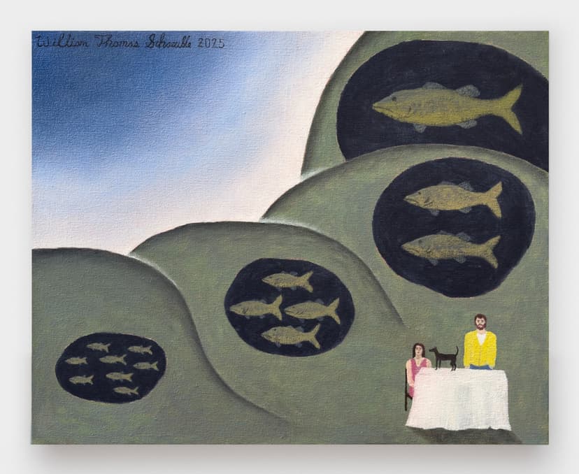 “Heartland” presents William Schaeuble’s paintings rooted in Midwestern imagery, merging the surreal with the everyday. Scenes of family, fields, and uncanny domestic moments reveal tensions between pastoral ideals and underlying social and psychological complexities, reflecting memory, belonging, and regional mythologies.