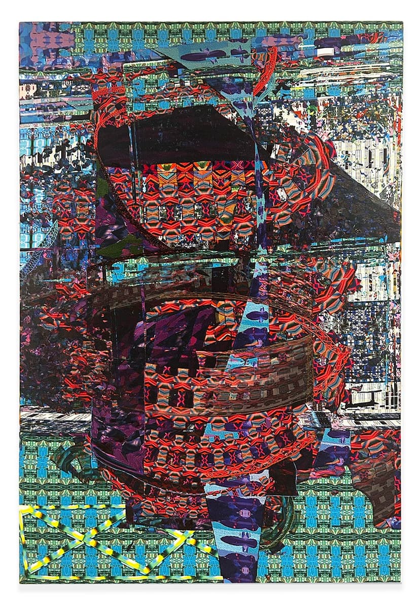 LoVid: Hotter than the Sun brings together textile works, video, and sculpture that translate digital language into physical form — and back again. New textiles use video stills as compositional material, stretched and distorted into dense ornamental fields layered with dye-sublimation, threadwork, and acrylic. The video Shake the Feeling reprocesses a street recording into flickering, photocollage-like surfaces where bodies dissolve into gesture. The sculptural installation Emails from the Paleolithic stages a collision between labor, automation, and the natural world. Throughout, instability is treated not as a problem but as a space of ongoing possibility.