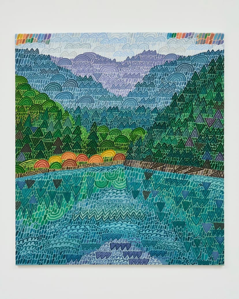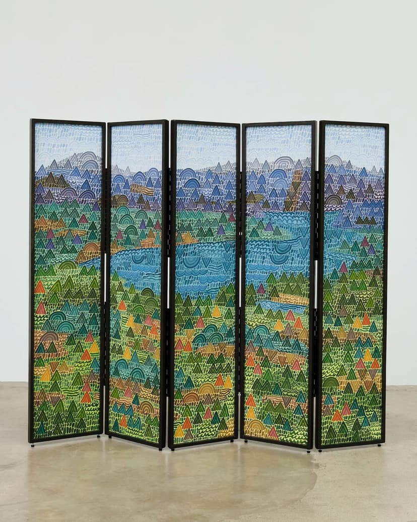 This solo exhibition presents new paintings and screen dividers by Howard Fonda that continue his exploration of landscape as a site of perception and reflection. Using wet-into-wet painting and rhythmic, undulating brushwork, Fonda creates luminous scenes that move between observation and abstraction. Referencing philosophical and Buddhist ideas, the works consider looking, impermanence, and the relationship between nature and consciousness.