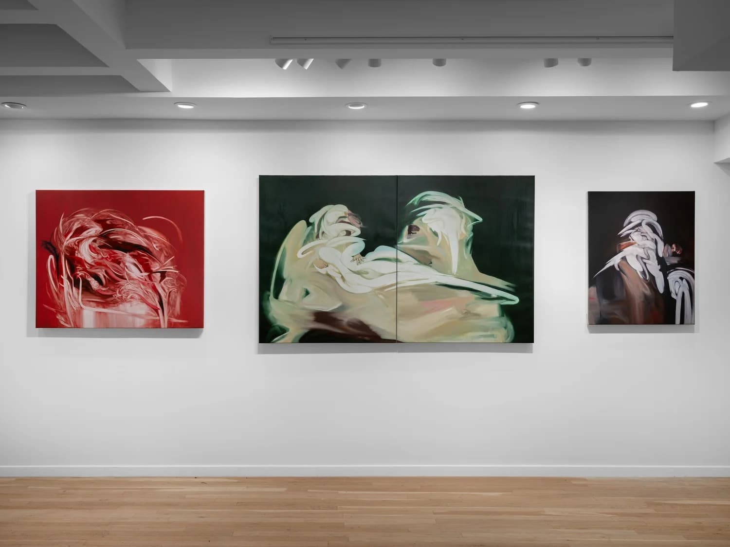Human Metaphor features large-scale paintings by Azuma that explore the body through fluid, gestural abstraction. Sweeping movements and traces of form evoke rhythm, softness, and motion, suggesting rather than defining the human figure. The works convey a lyrical record of bodily presence and movement.