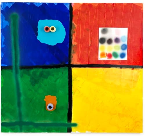 I Love Painting + Painting Loves Me features Rick Briggs’s inventive, process-driven works that playfully engage the history and materials of painting. Using rollers, oil sticks, and spray paint, he transforms everyday tools into visual and structural elements. From luminous stripe paintings to a freestanding sculptural canvas, Briggs invites viewers into a lively exchange with his art, where painting isn't just medium, but companion—provocative, humorous, and deeply personal.