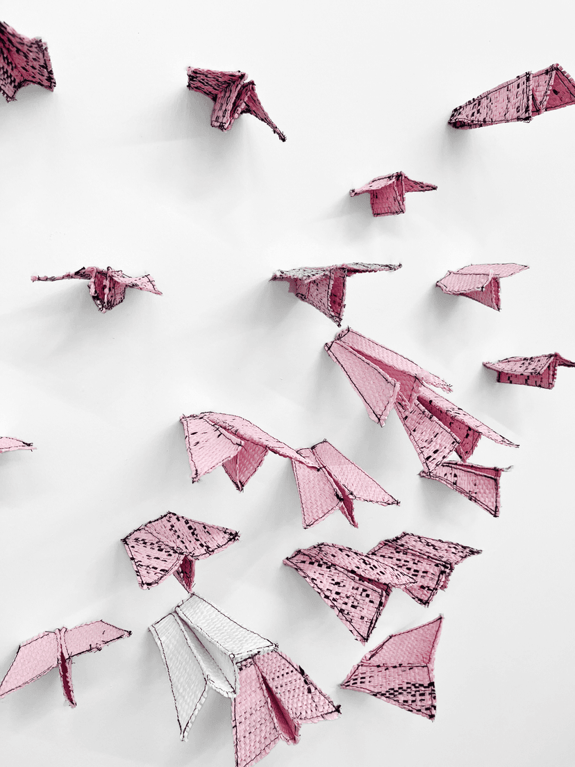 We’ve Been Trying To Reach You is a two-week textile exhibition by Lovisa Axén and Carter Shocket exploring memory, longing, and connection. Axén’s button tapestries evoke fleeting memories and spaces between presence and absence, while Shocket’s woven sculptures and paper airplanes link him to trans ancestry and community. The installation transforms Eleventh Hour Art into a luminous, dreamlike environment of ephemeral reach and desire.