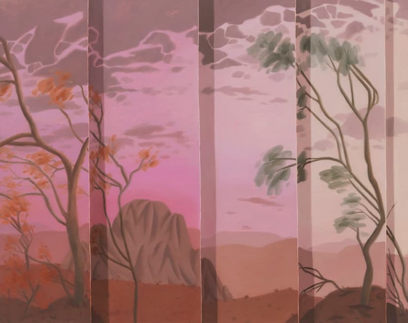 Imago pairs Imogen Allen and Anne Carney Raines in an exploration of landscape, symbolism, and perception. Allen’s semi-abstract butterfly wing paintings shift perspective from micro to macro, evoking vitality and intimacy with the natural world. Raines’ theatrical landscapes unfold like stage sets, saturated sunsets hinting at dystopia. Together, they reclaim “too pretty” subjects—sunsets, butterflies—with playful defiance, turning cliché into radical inquiry.
